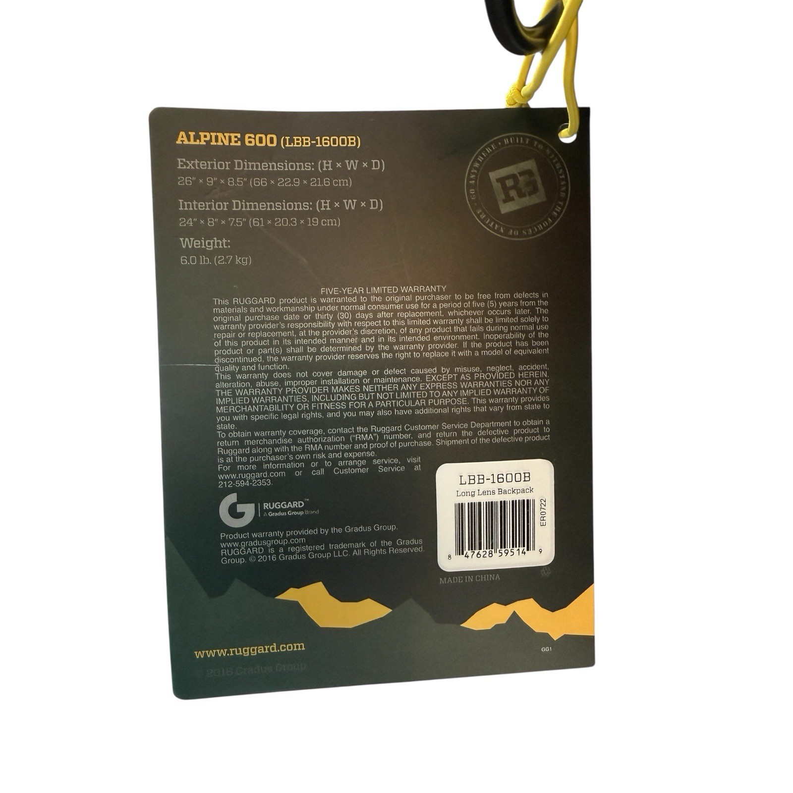 RUGGARD LBB-1600B Alpine 600 Lens Backpack for DSLR and 600/800mm Lens BRAND NEW