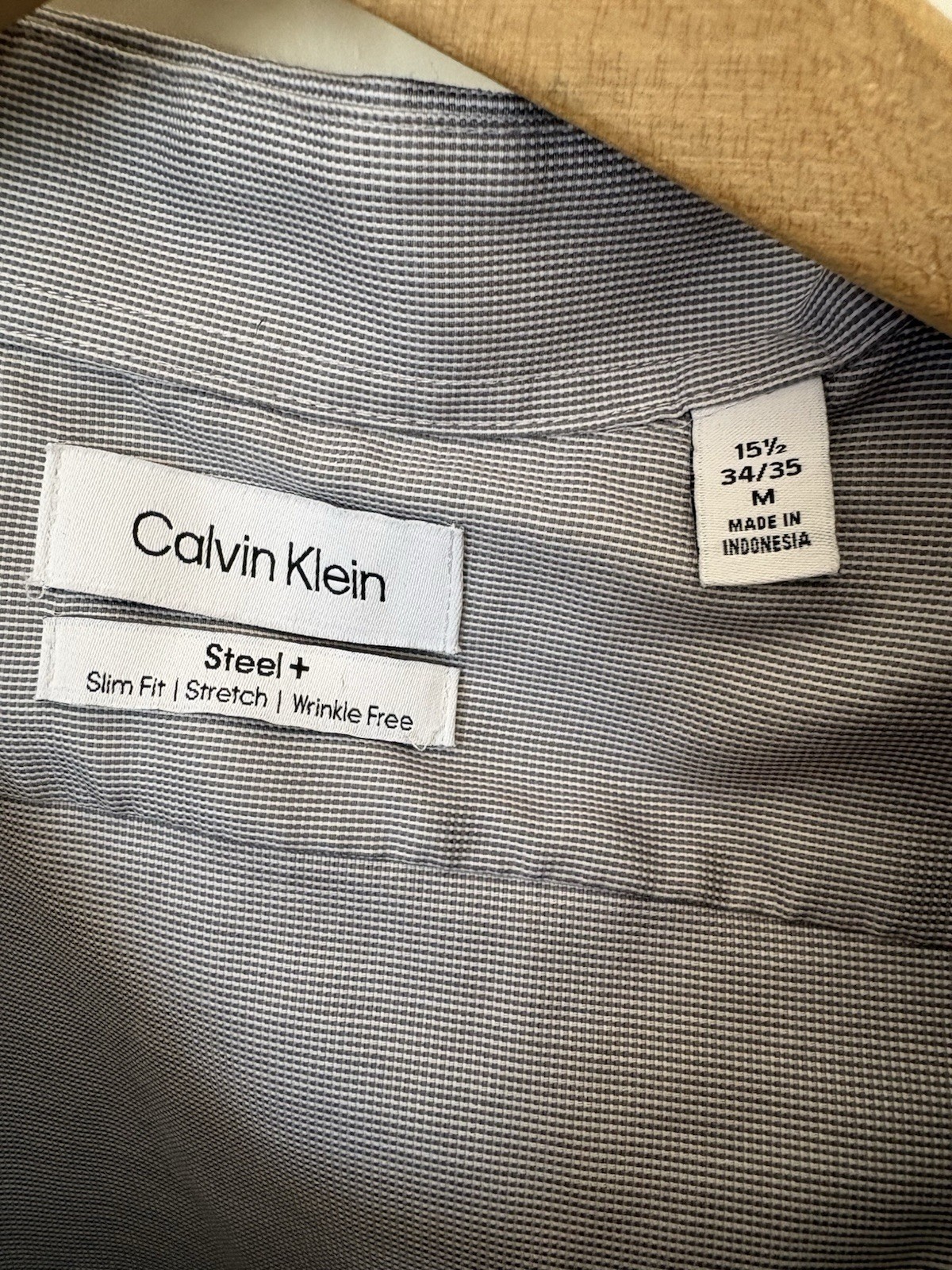 Calvin Klein Slim Fit Long Sleeve Dress Shirt Gray Plaid Button Up Men s Size M