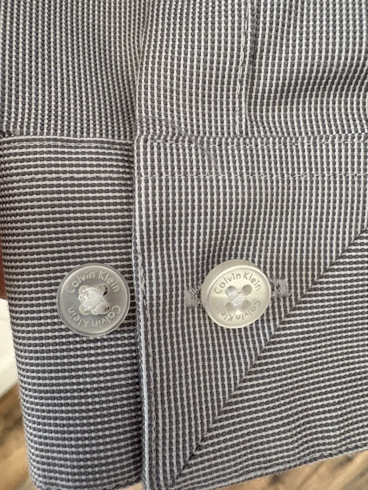 как выглядит Calvin Klein Slim Fit Long Sleeve Dress Shirt Gray Plaid Button Up Men s Size M фото