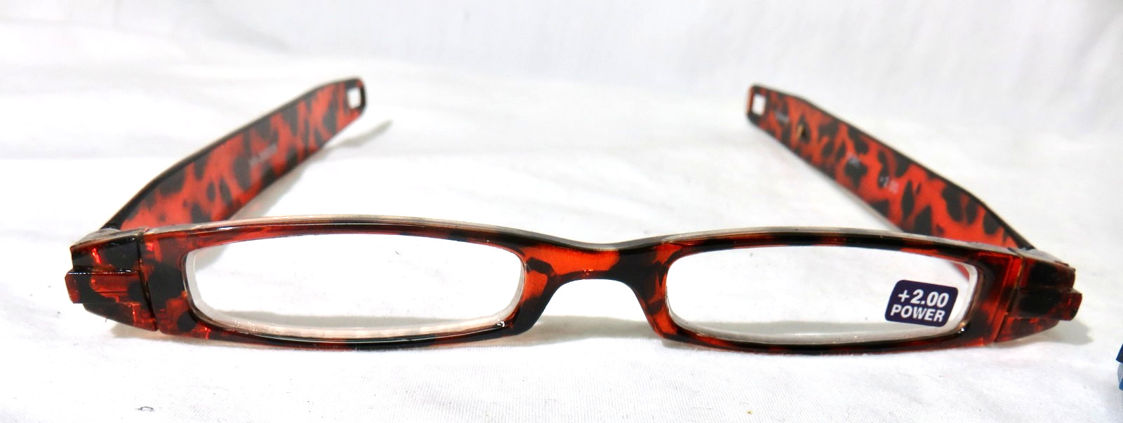 Lot 0f 2 Pairs of NEW Flat folding Unisex Reading glasses reader strength 2.00