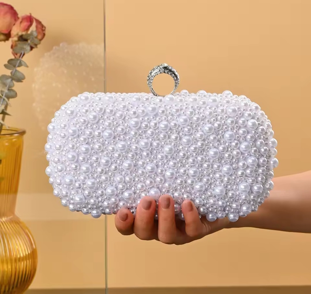 как выглядит White Beaded Pearl Embellished Bridal Clutch Bag Elegant Evening Wedding Purse фото