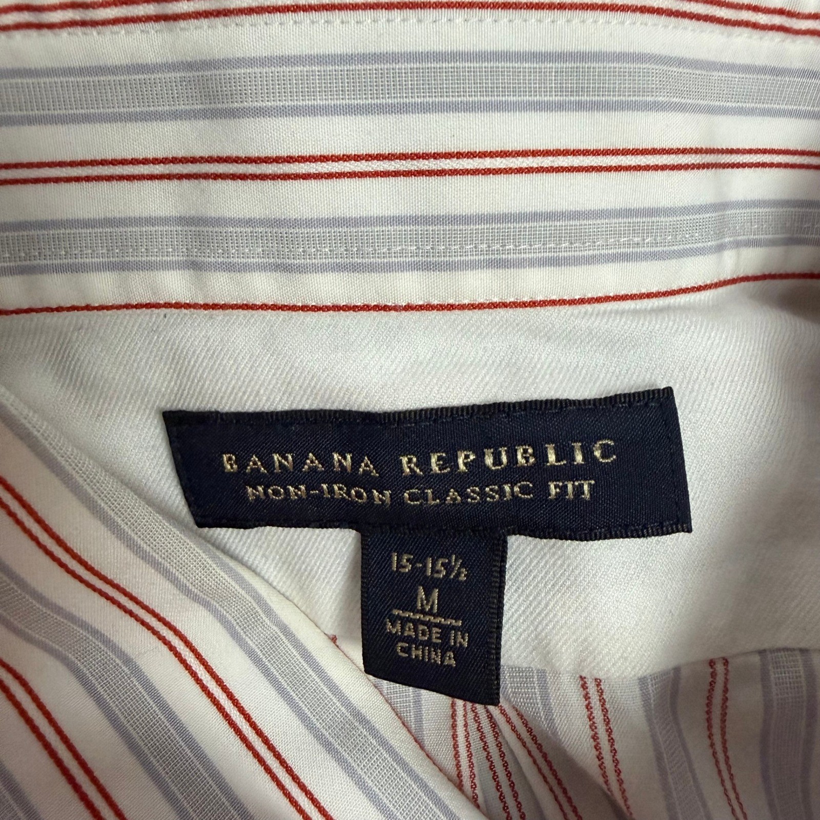 как выглядит Banana Republic Mens Non-Iron Classic Fit Striped Button Down Shirt Red Blue M фото