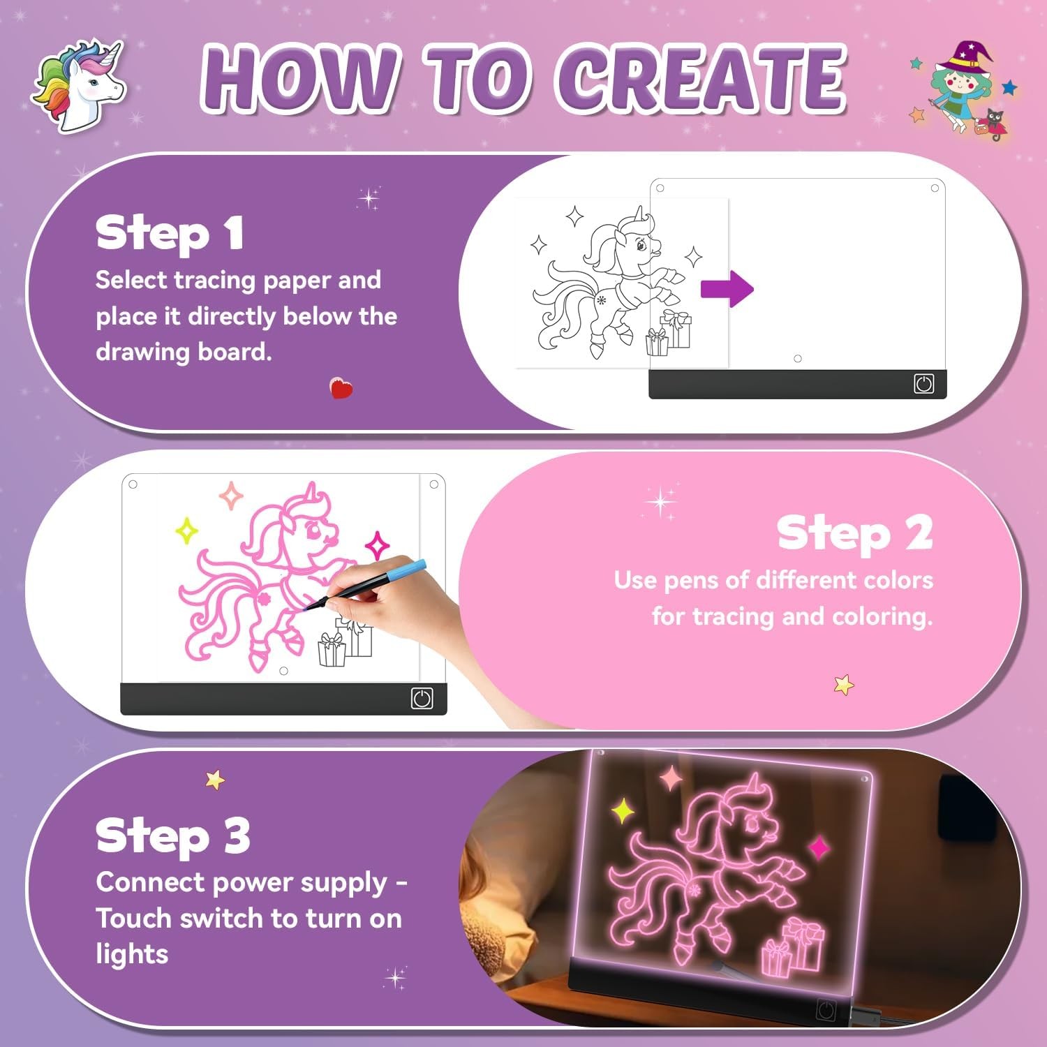 LED Drawing Board for Girls, Kids, 9.8x7.9 7 Colors DIY Doodle Glow Note Board