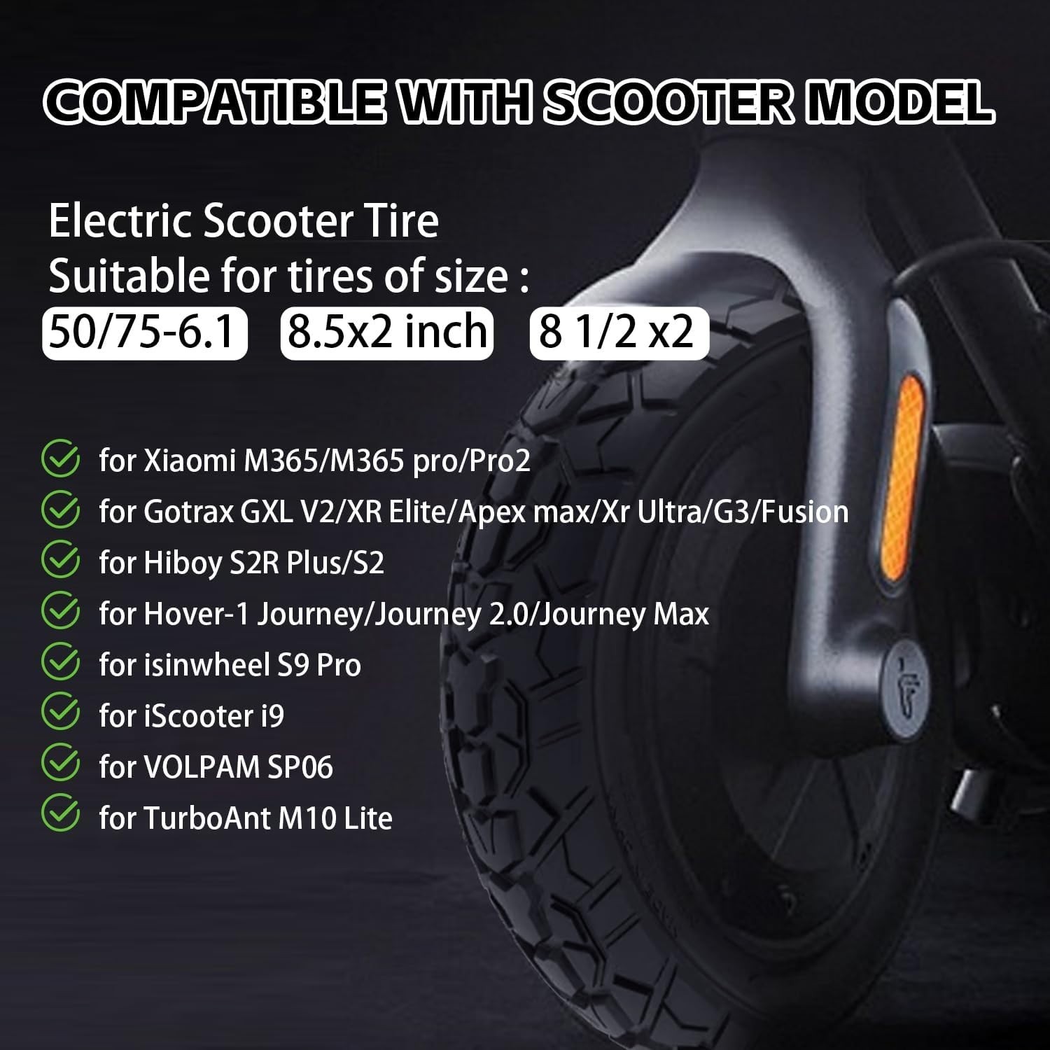 50/75-6.1 Off-road Solid Tire, 8 1/2 x2 Scooter tire, 8.5x2 Scooter Tubeless Sol