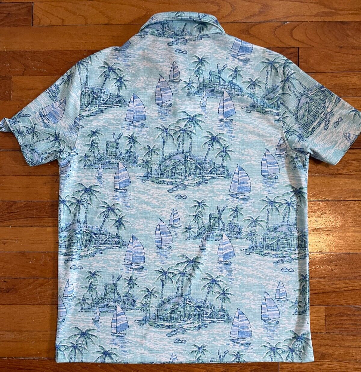 Izod Men's M Saltwater Polo Shirt Green Blue Palm Tree Sail Golf Performance
