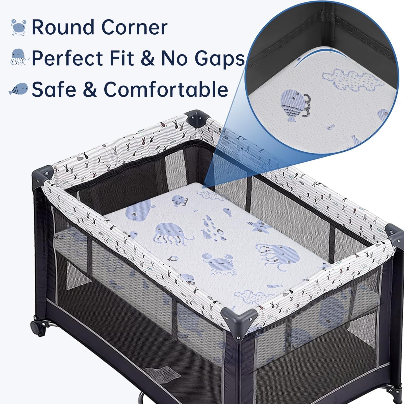 Pack and Play Mattress Memory Foam 38Lx26W Breathable Washable Soft Cover Dual