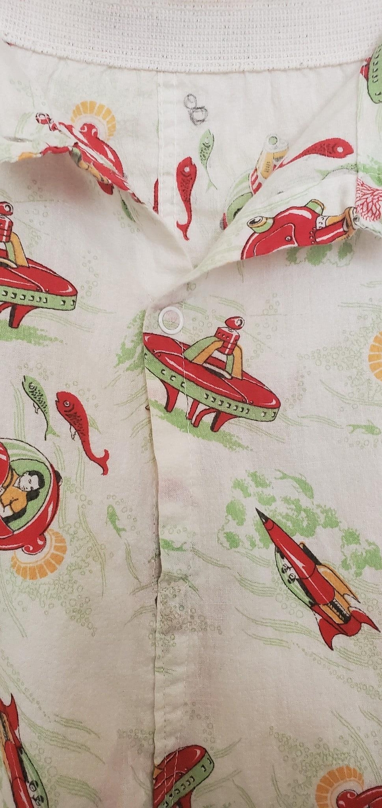 Vintage 50s Boy's Cotton Pajamas PJs Rocket Spaceship Theme Bates Jama Size 6