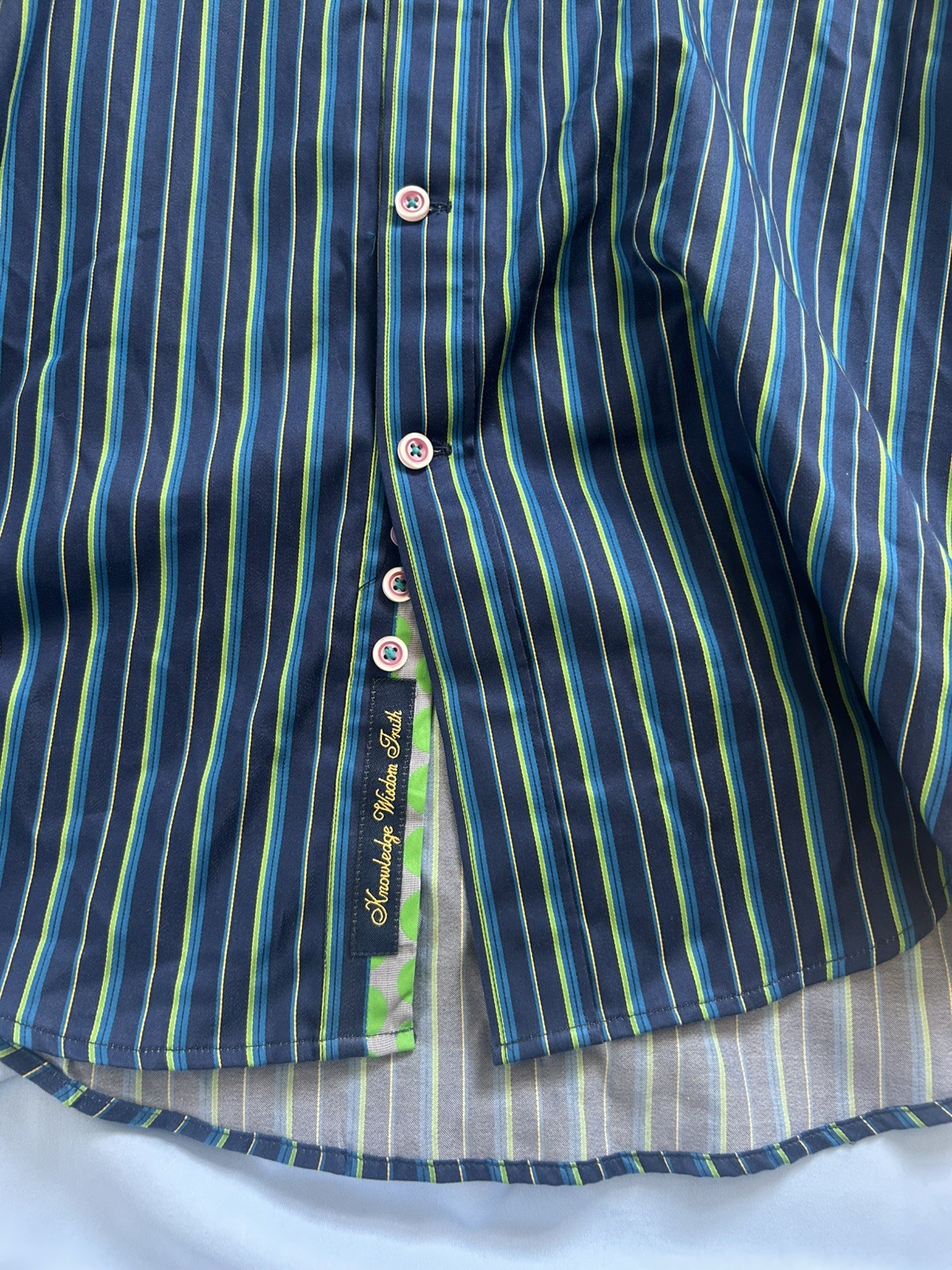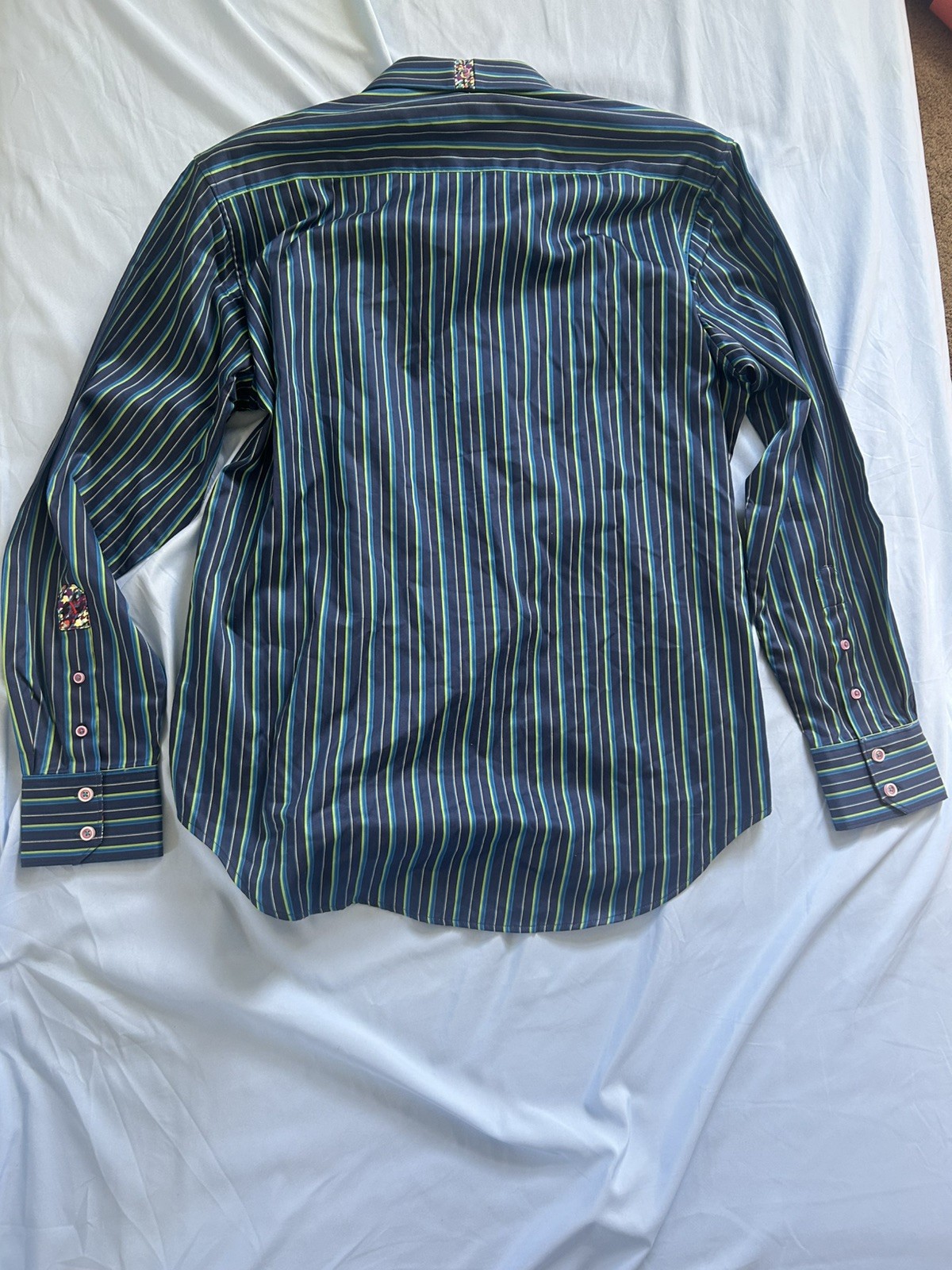 как выглядит Robert Graham Shirt Mens L blue Green Striped Long sleeve button up down shirt фото