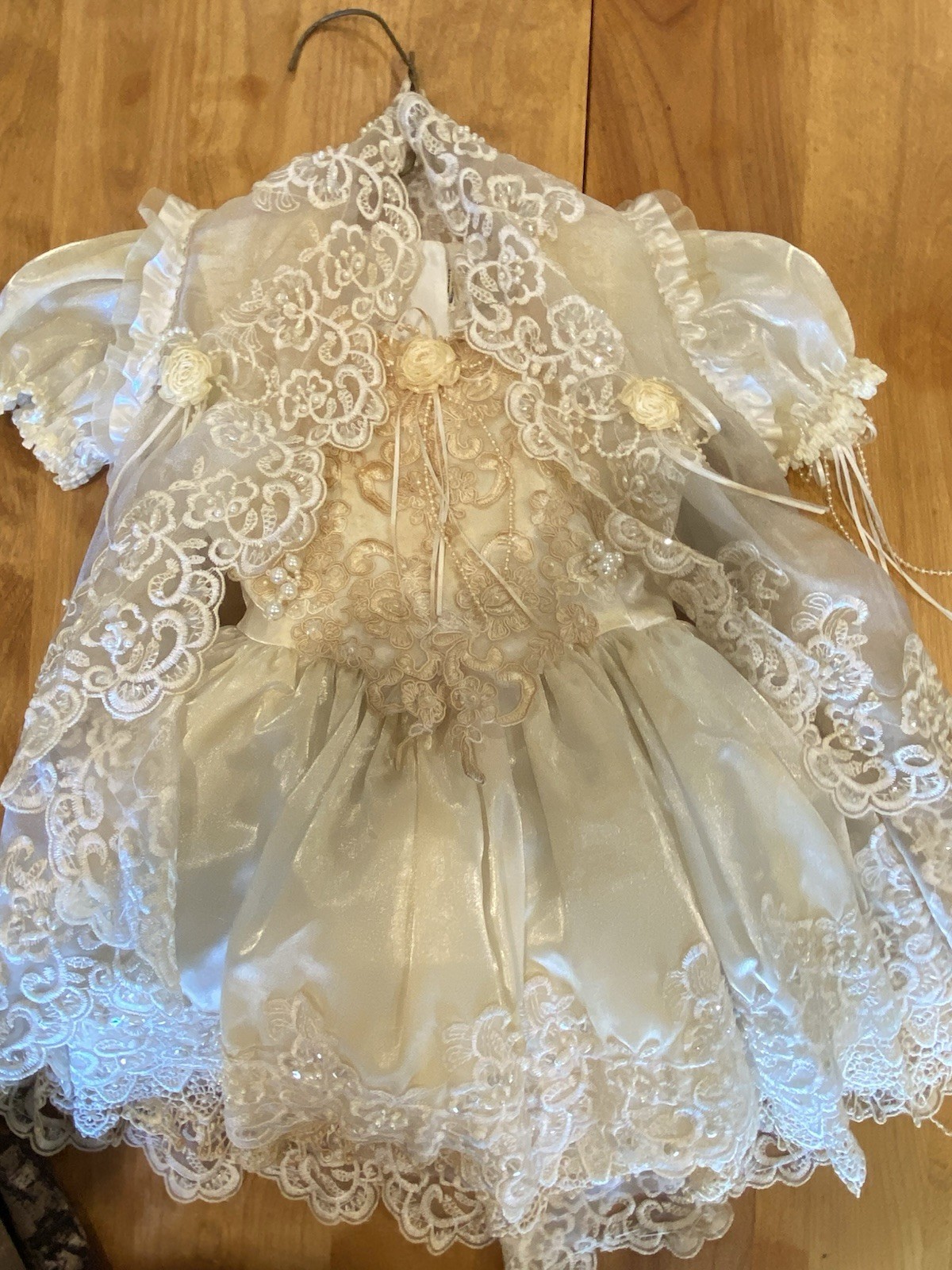 как выглядит Vintage Polyester USA Size 2 Virgin Mary Embroidered Christening 2 Piece Dress фото