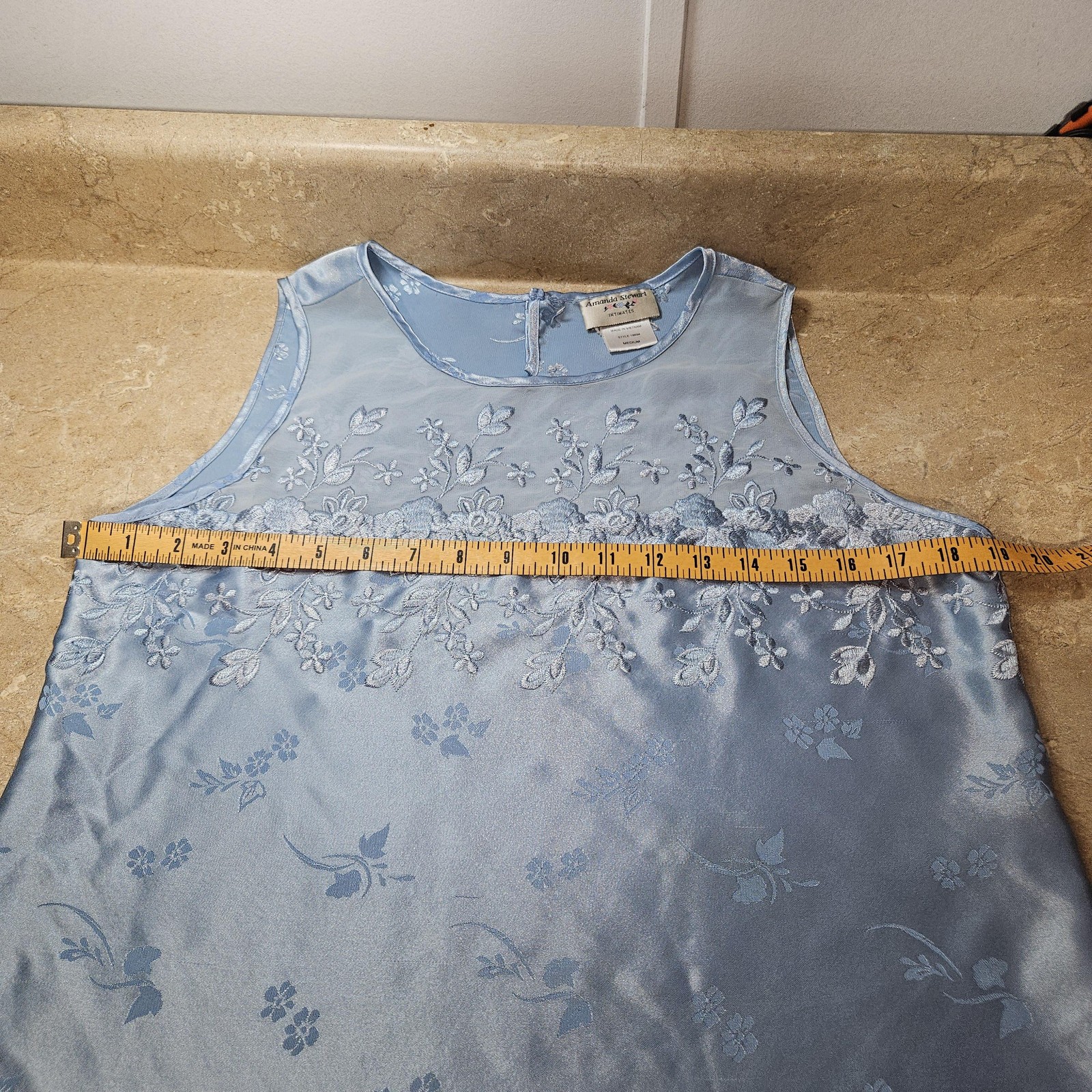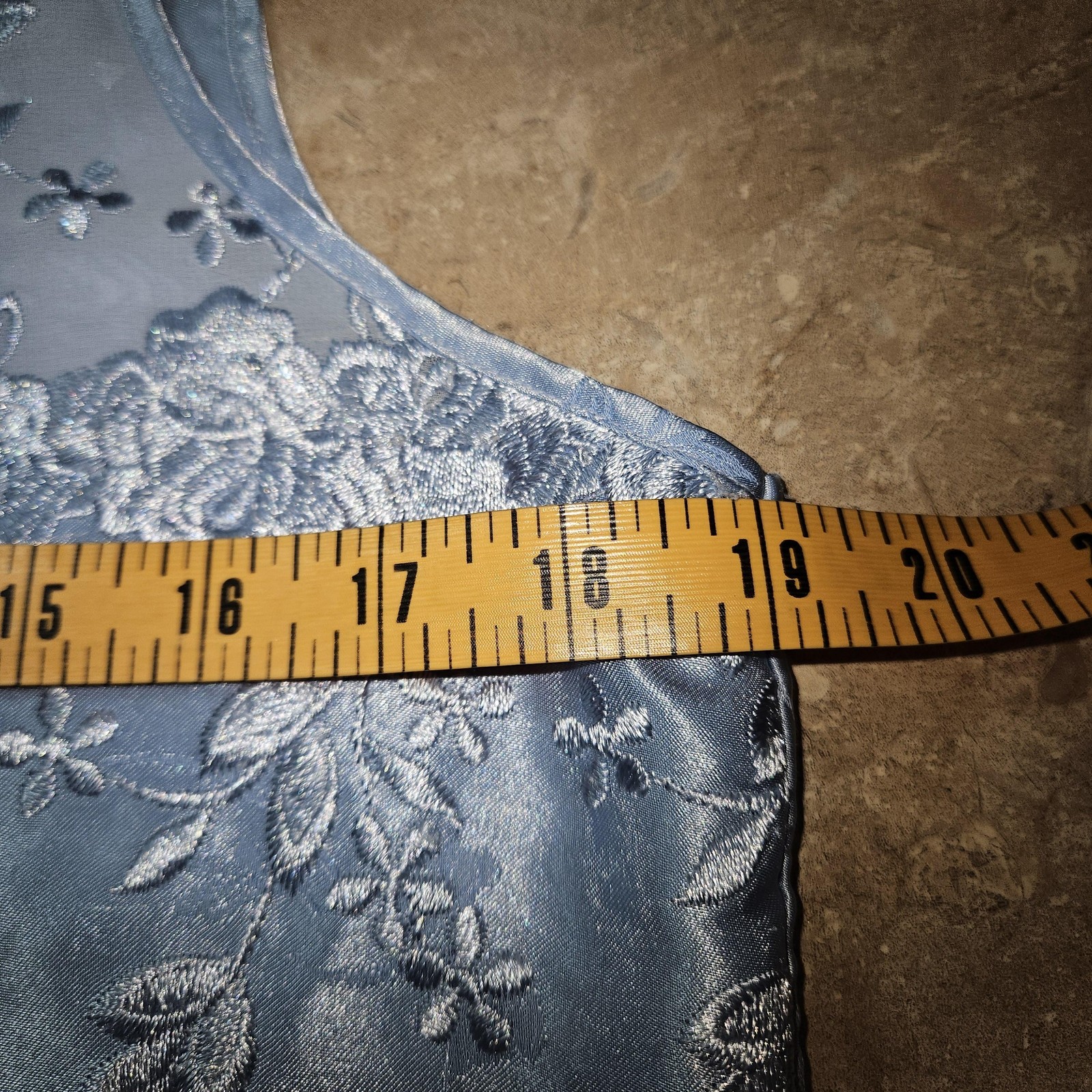 как выглядит VTG Satin Embroidery Cami Tank Top M Blue Floral Coquette Feminine Fairycore фото