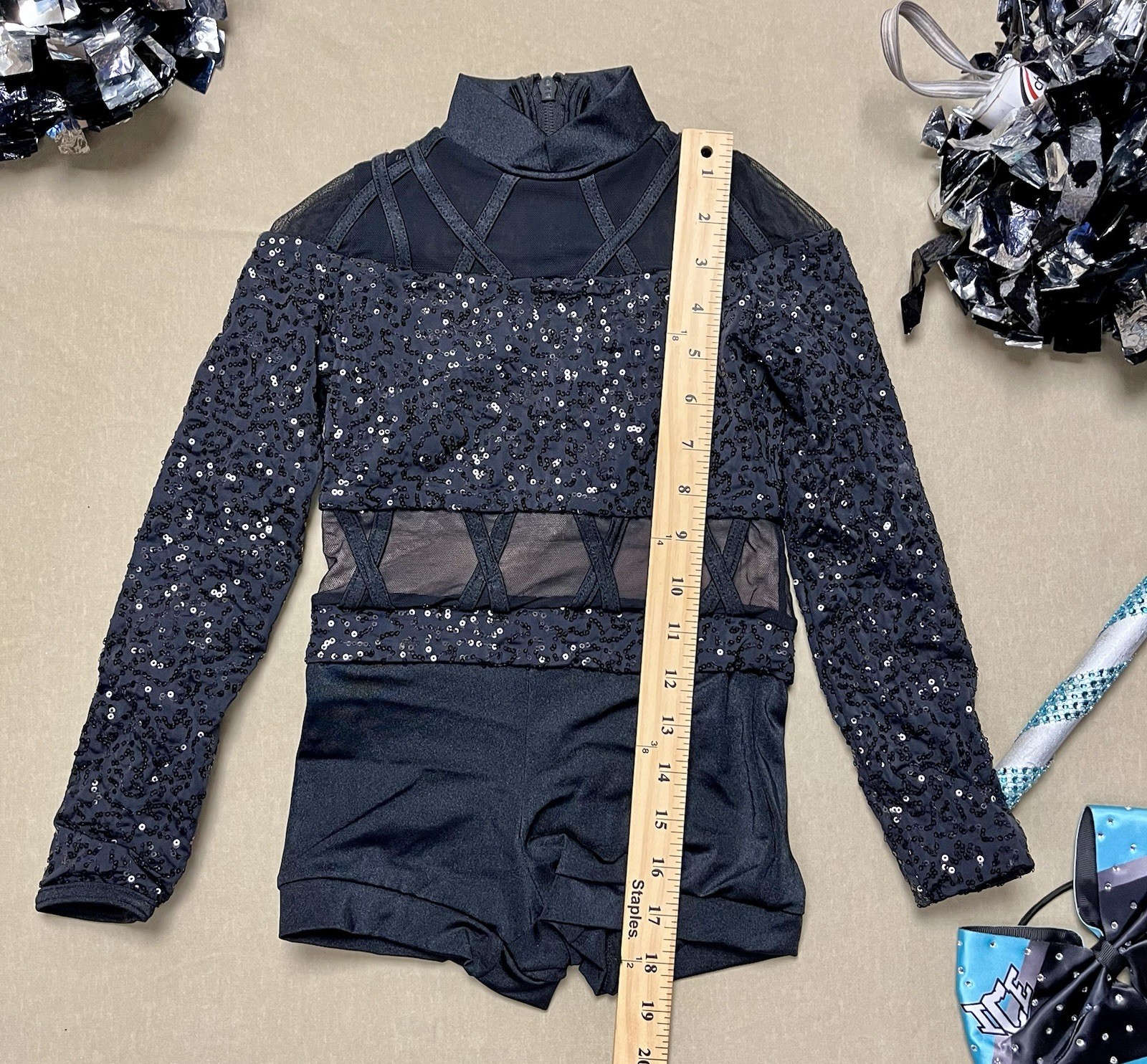 Weissman Black Sequin Love Runs Out Model Size IC 7/8 Dance/ Cheer Costume