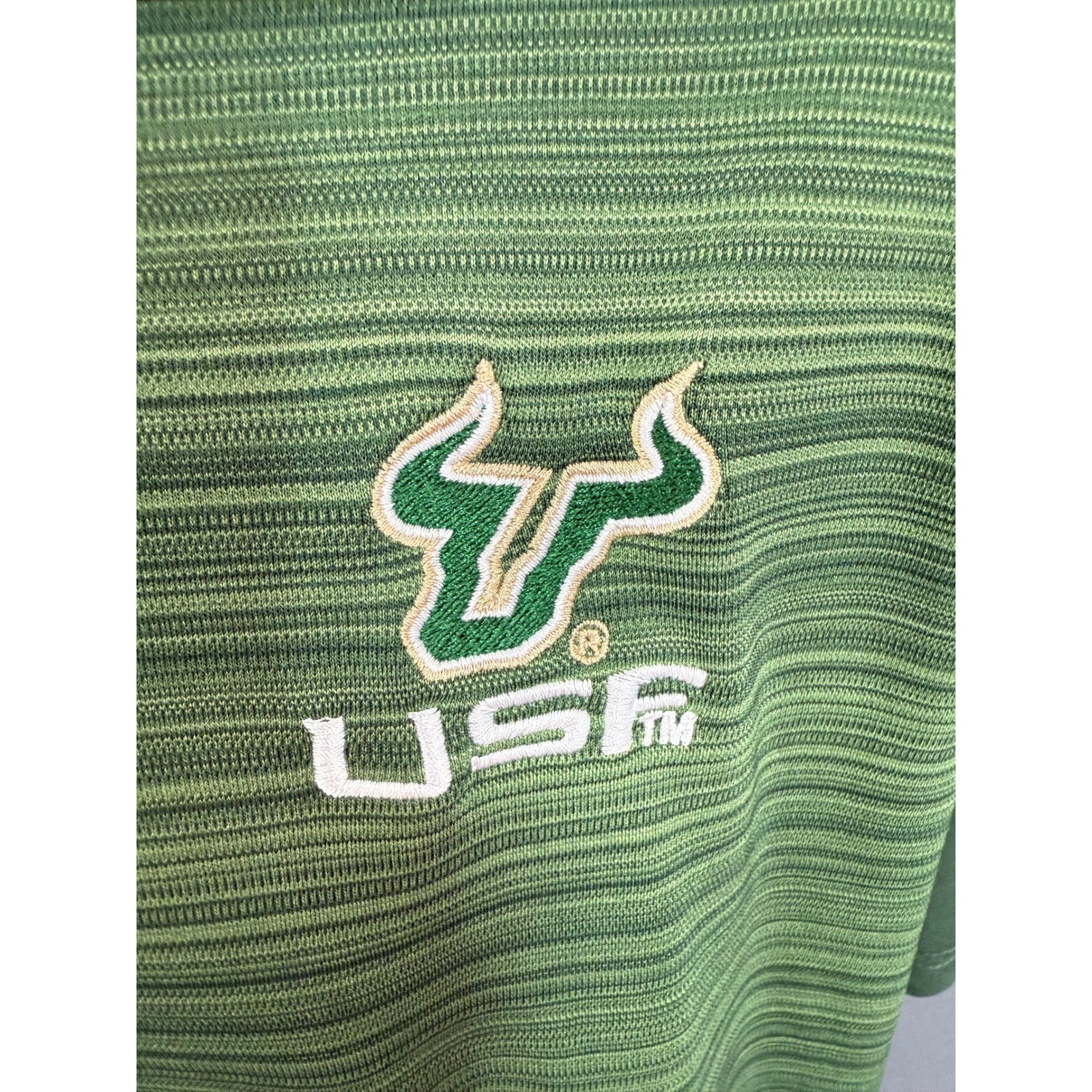 как выглядит Champion USF South Florida Bulls Mens Large Green Striped Performance Polo Shirt фото