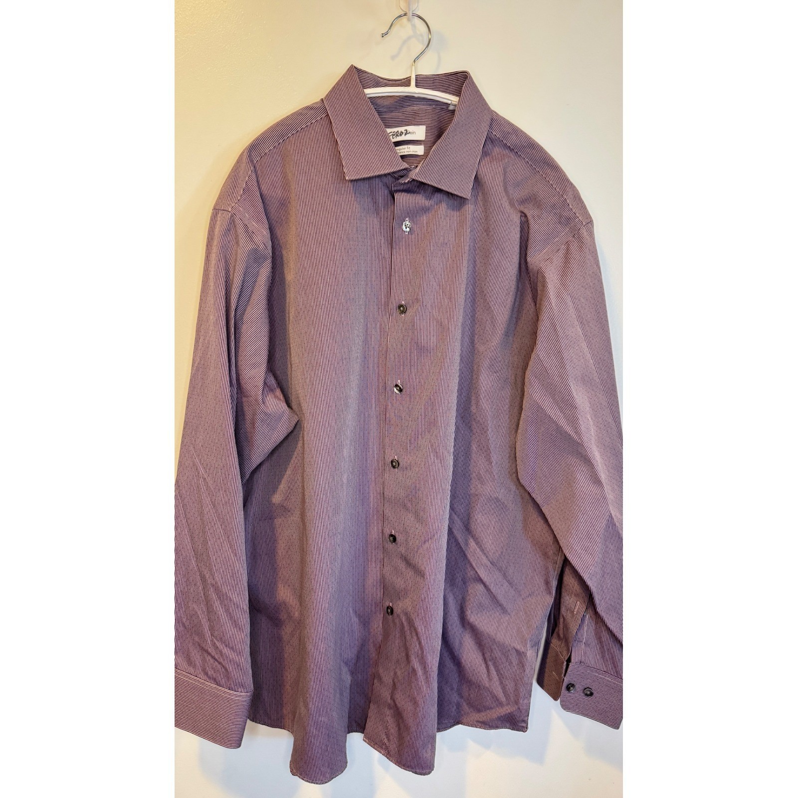 Calvin Klein Mens Regular Fit Performance Non-Iron Dress Shirt Purple Stripe L