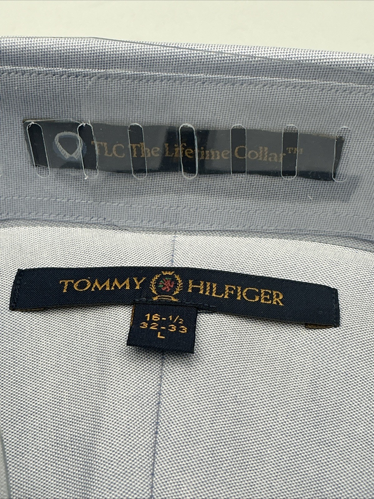 как выглядит NWT Tommy Hilfiger TLC Lifetime Collar Blue Dress Shirt L 16.5 32/33 фото