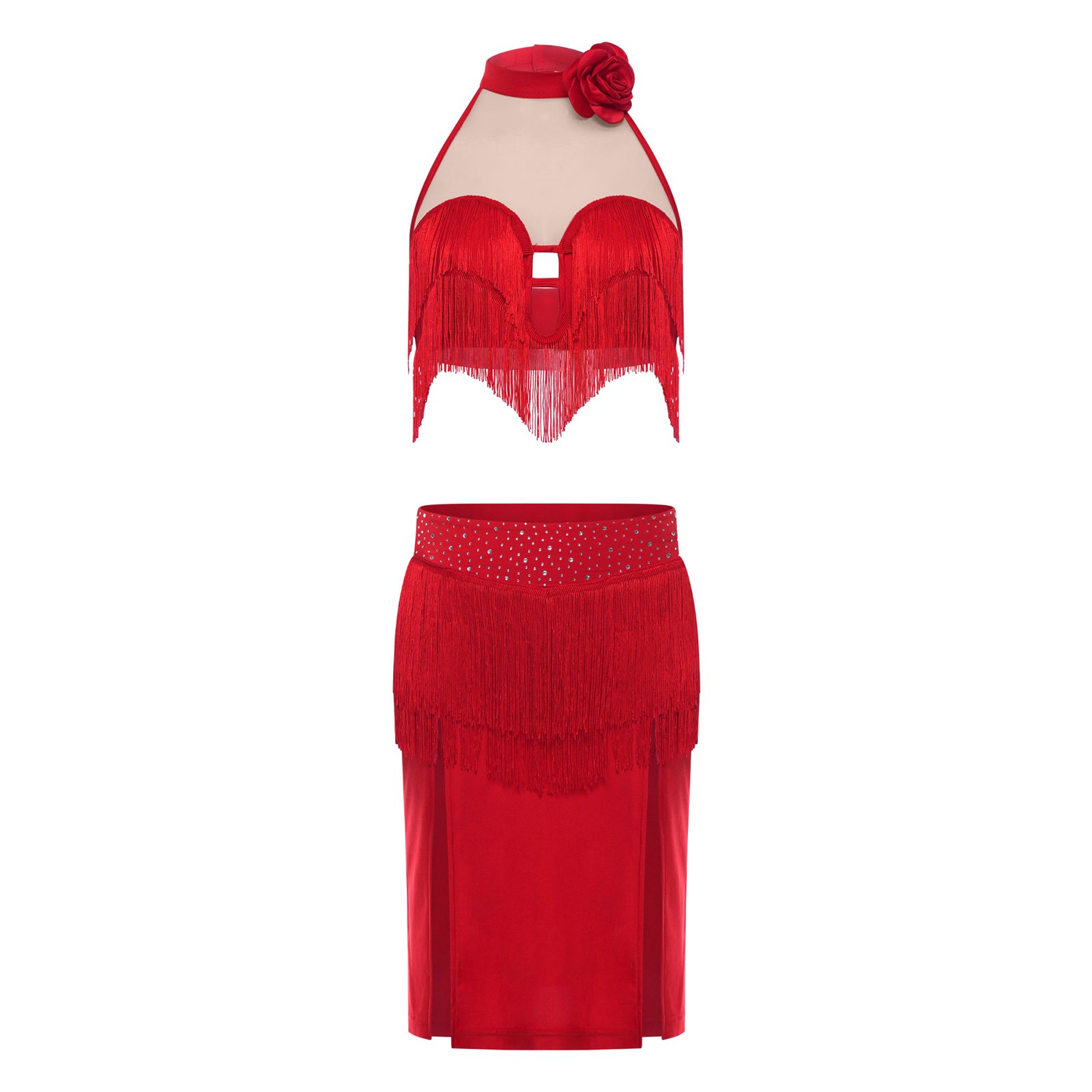 Women Set Miniskirt Outfit Samba Dancewear Latin Modern Slit Hem Adult Salsa