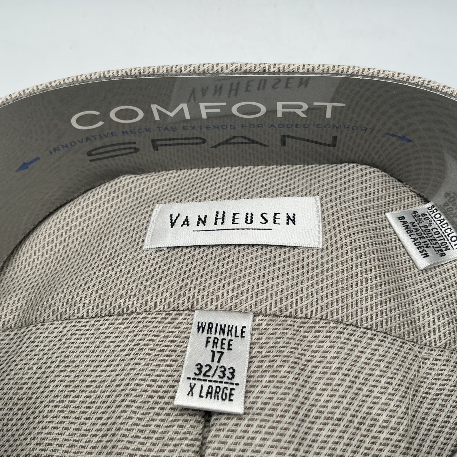 NWT Van Heusen Wrinkle Free Comfort Span Brown MicroGrid Dress Shirt XL 17 33/33