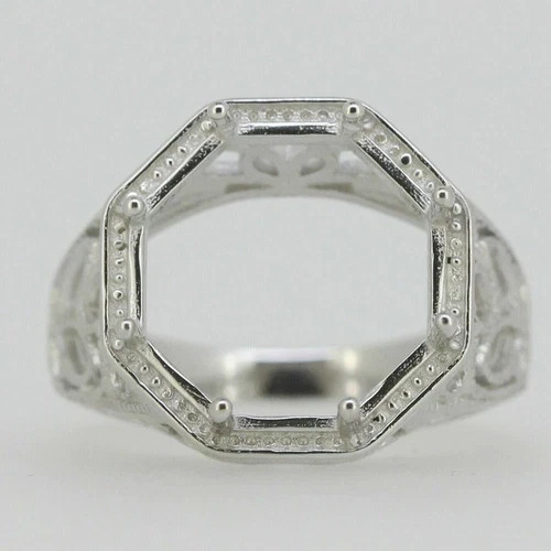 925 Sterling Silver Semi Mount Ring Setting Round 12x12mm Art Deco