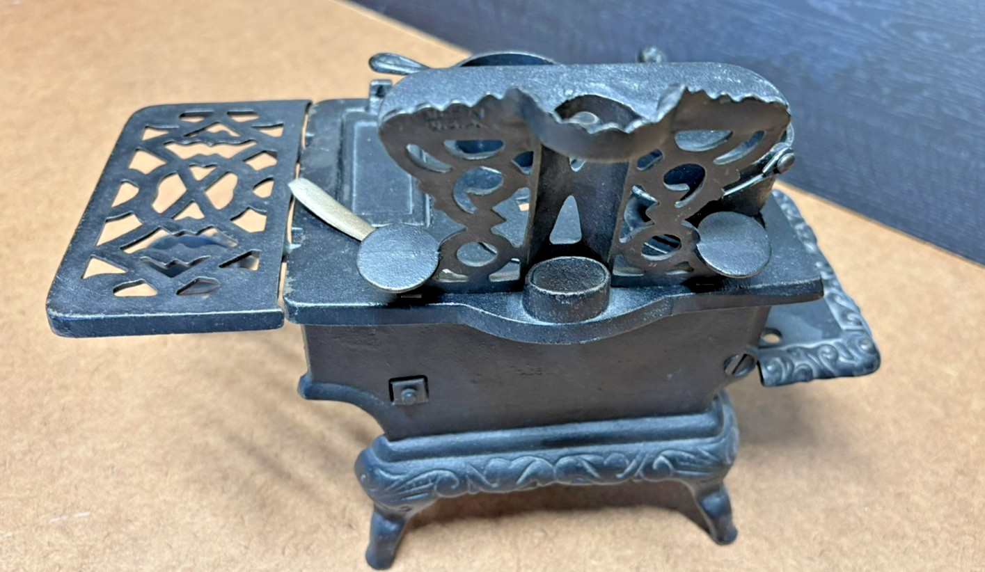 Vintage Crescent Miniature Cast Iron Stove Toy/display piece Pots Pans Pail