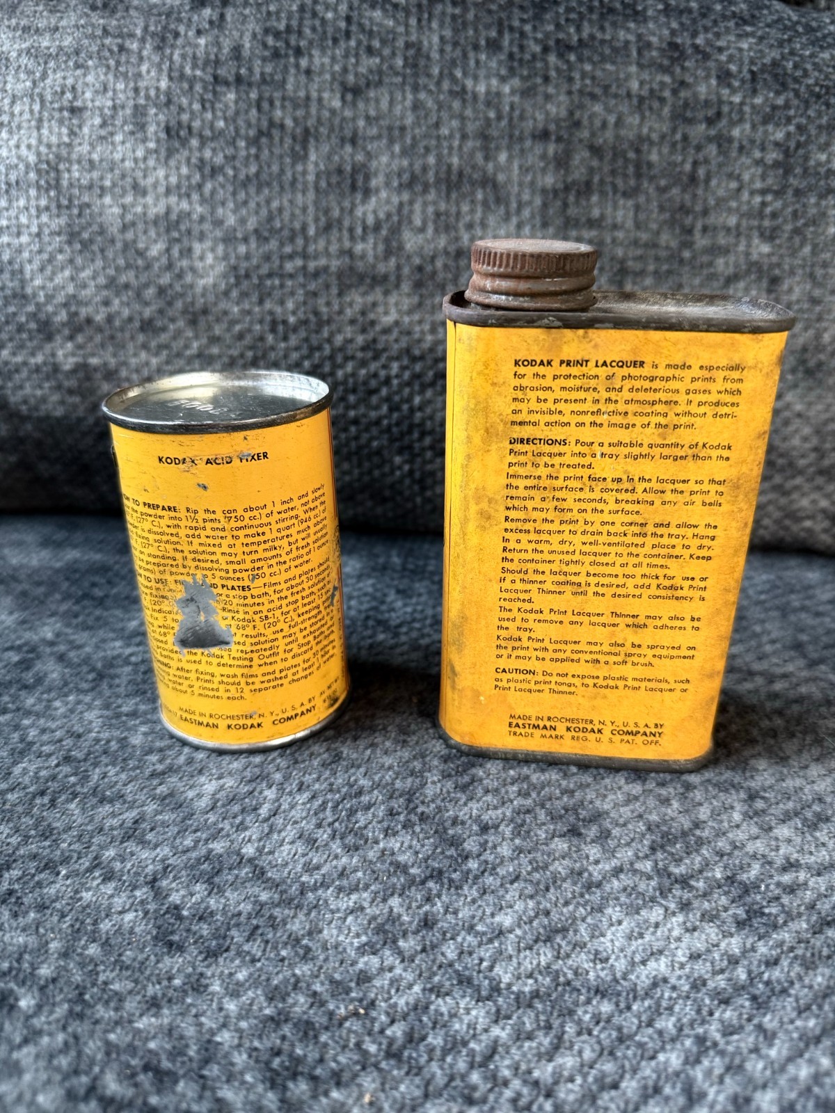 Vintage Eastman Kodak Acid Fixer and Print Lacquer Tins