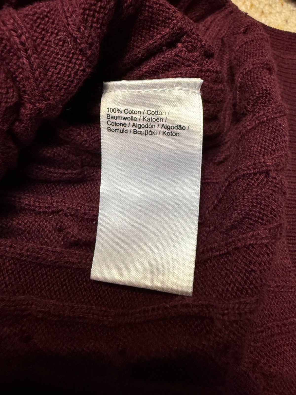как выглядит Lacoste Preppy Maroon Cotton Crewneck Cable Knit Sweater Size 40 фото