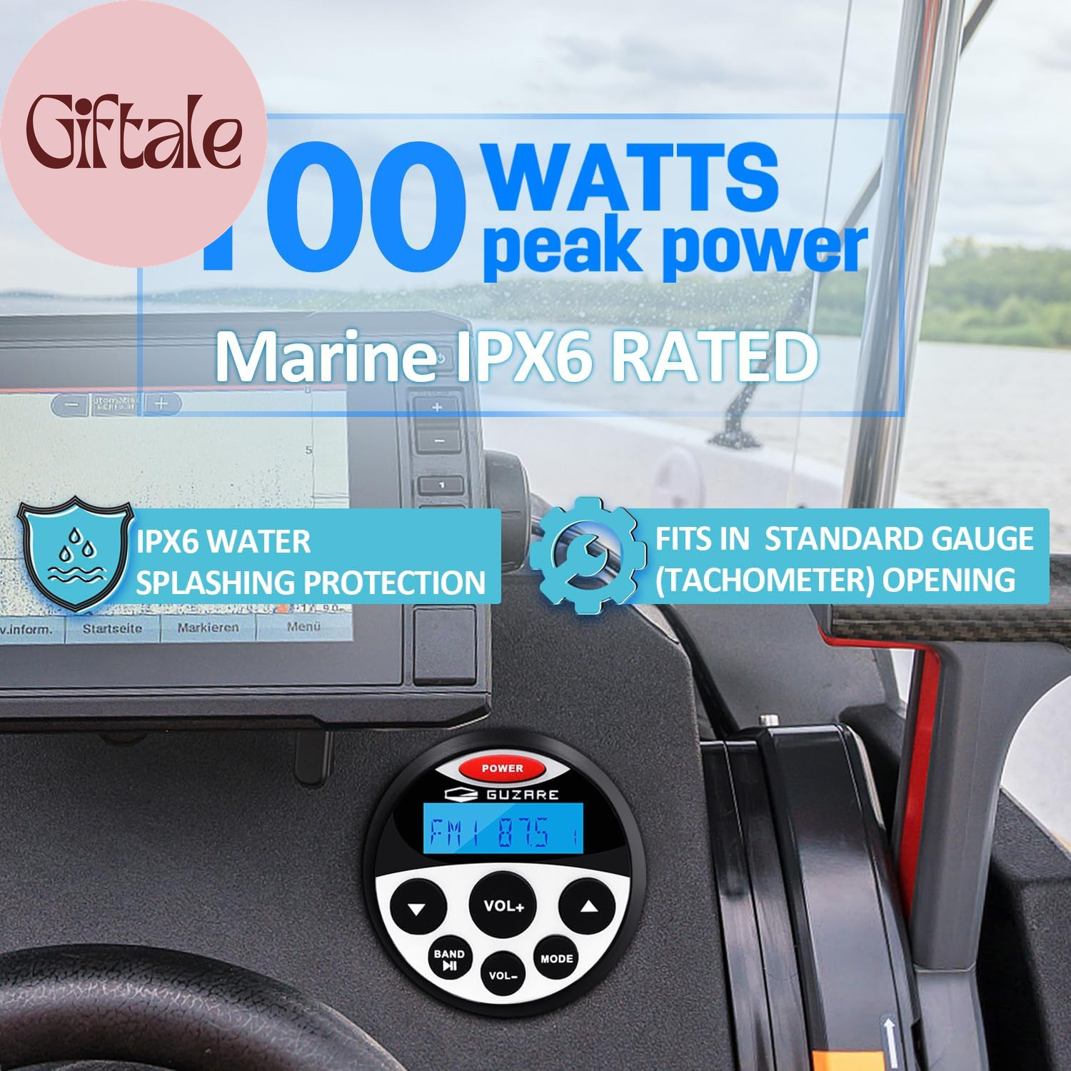 Marine Bluetooth Audio System Package, Boat FM/AM Gauge Radio Receiver with Ante