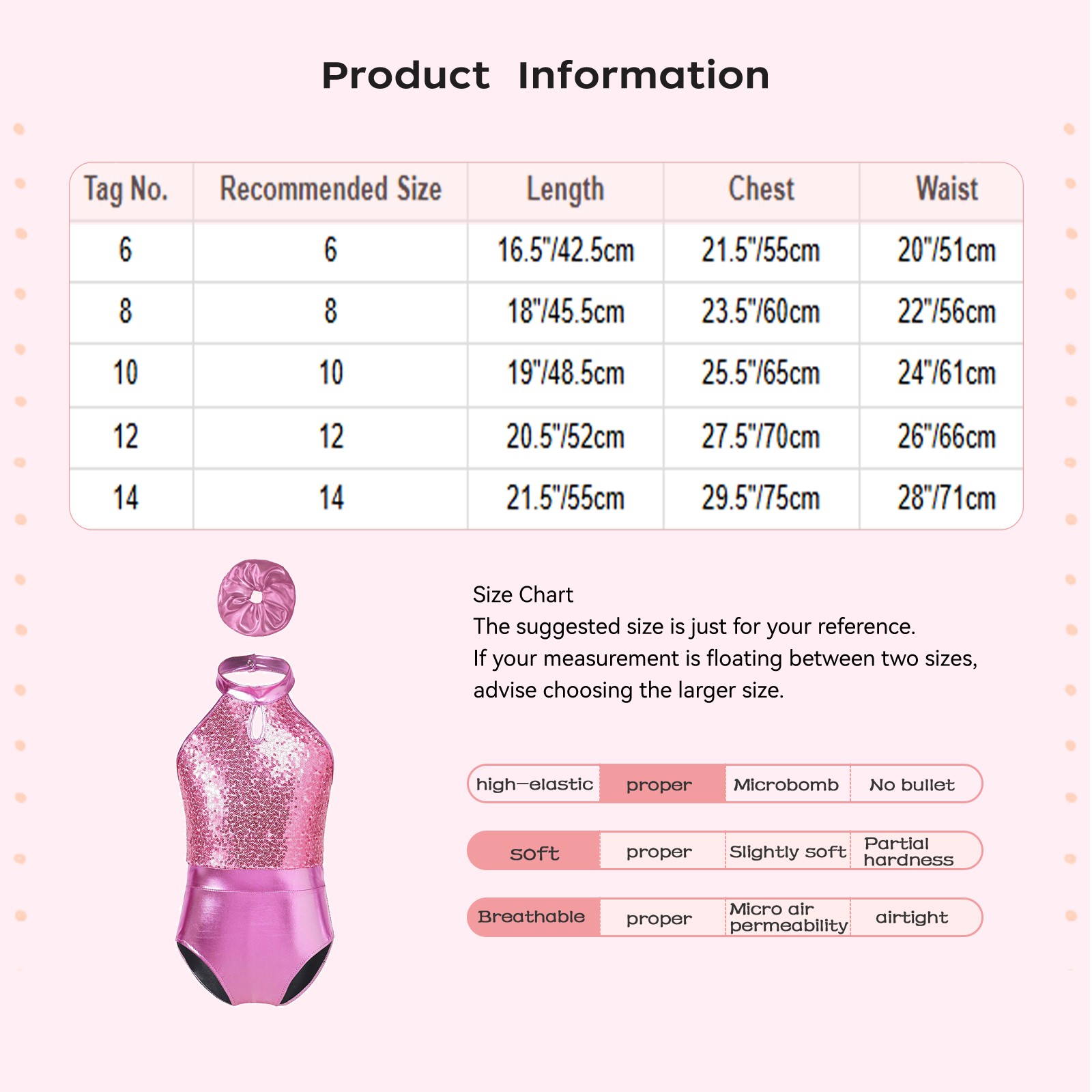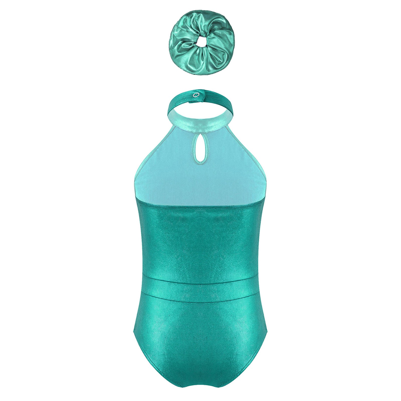 US YiZYiF Girls Sequins Halter Neck Leotard Ballet Dance Bodysuit with Hairband