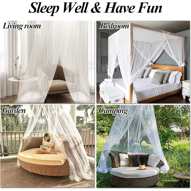 4 Corner Post Bed Canopy Mosquito Net King Size Polyester Mesh Bedroom Decor New