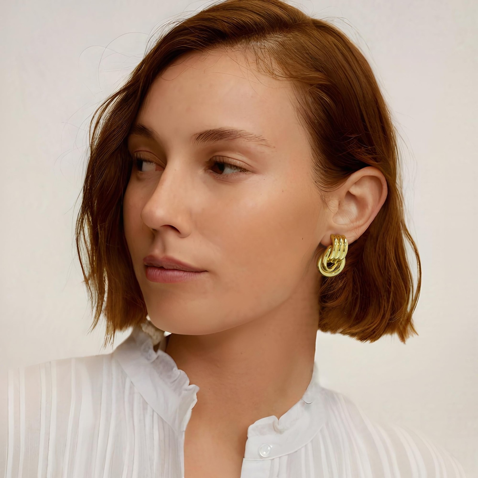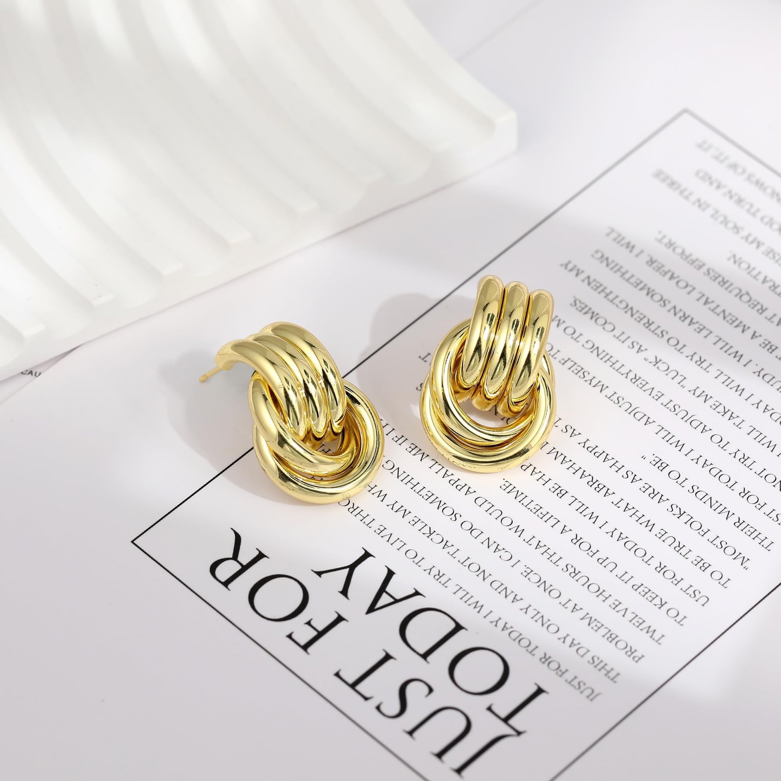 Chunky Gold Knot Earrings for Women, Gold Silver Statement Geometric Drop Dan...