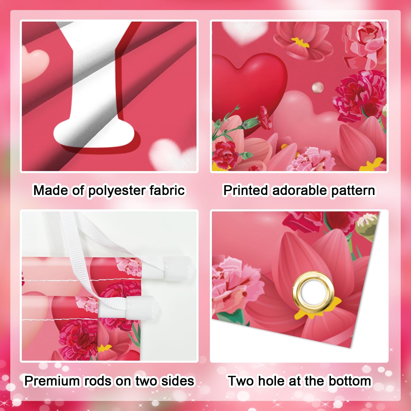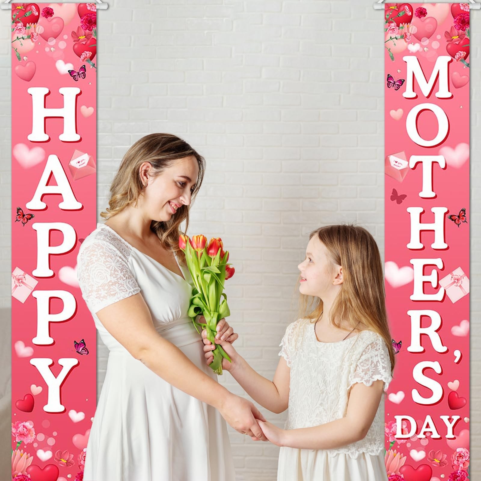Happy Mother's Day Banner Mothers Day Welcome Porch Sign Red Pink Heart Hanging