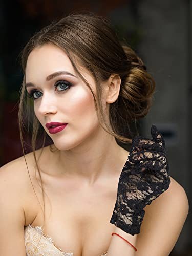 Lace Gloves for Women Tea Party Short Lace Gloves Courtesy Dressy for Black