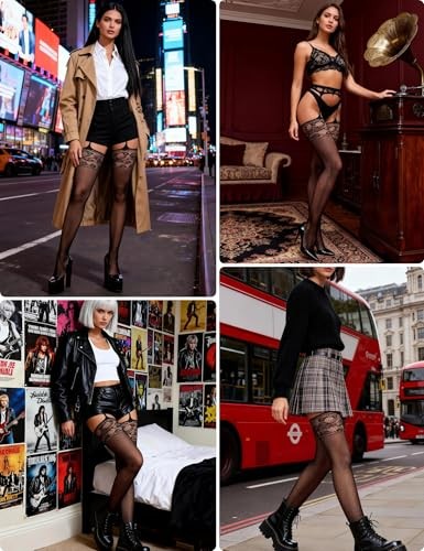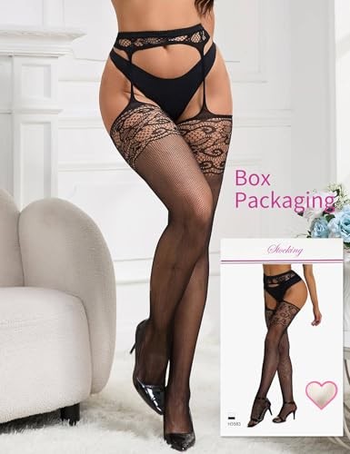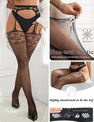 Suspender Pantyhose for Women Pattern Lace Fishnet Large-XX-Large 1- Black