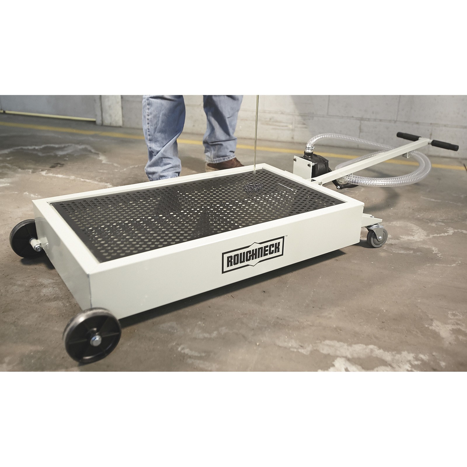 Roughneck Low-Profile Oil Drain Dolly, 15 Gallons, Manual Pump, Steel