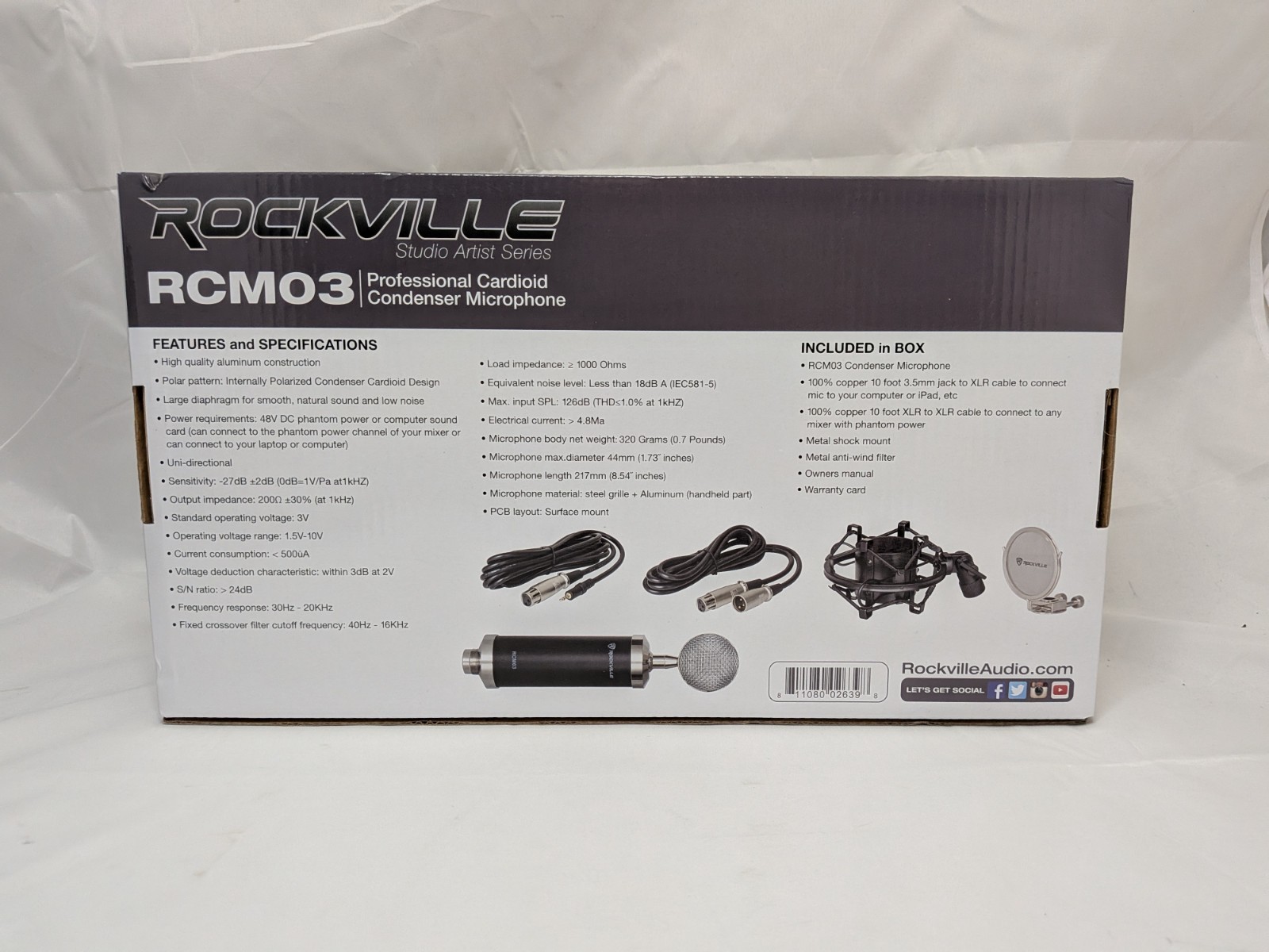 Rockville RCM03 Pro Studio Recording Condenser Microphone Mic Metal Shock Mount