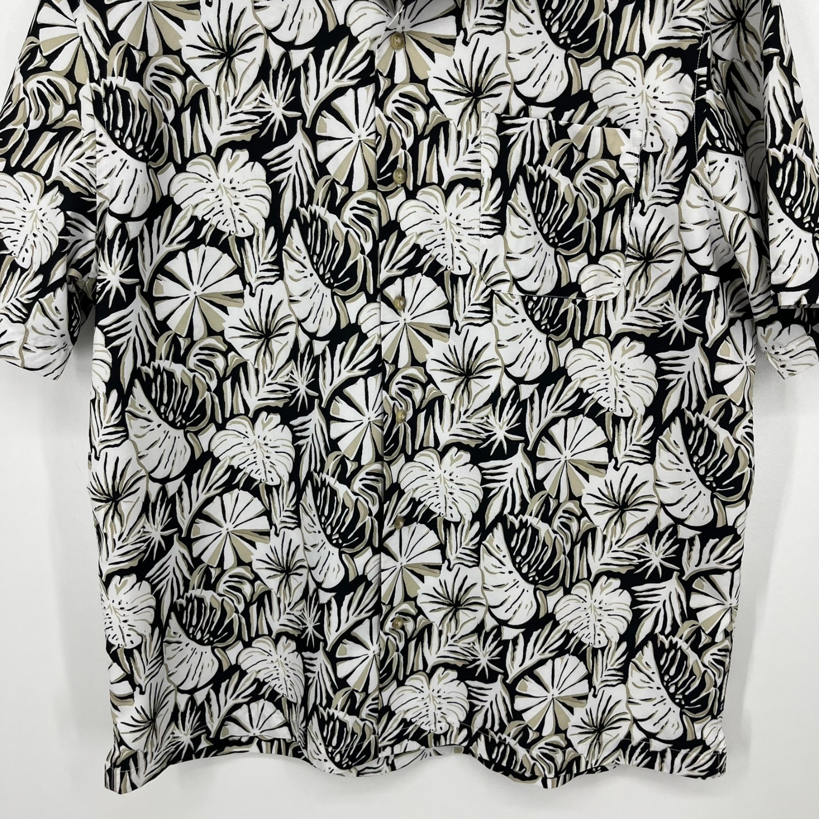 Chaps Hawaiian Shirt Men's Size XL White Black Floral Print Polyester