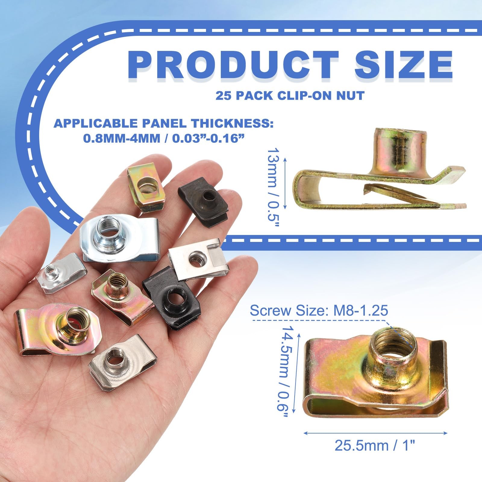 U-Style Clip-On Nut, 25 Pack M8-1.25 Regular Extruded U-Nut U-Type Fasteners ...