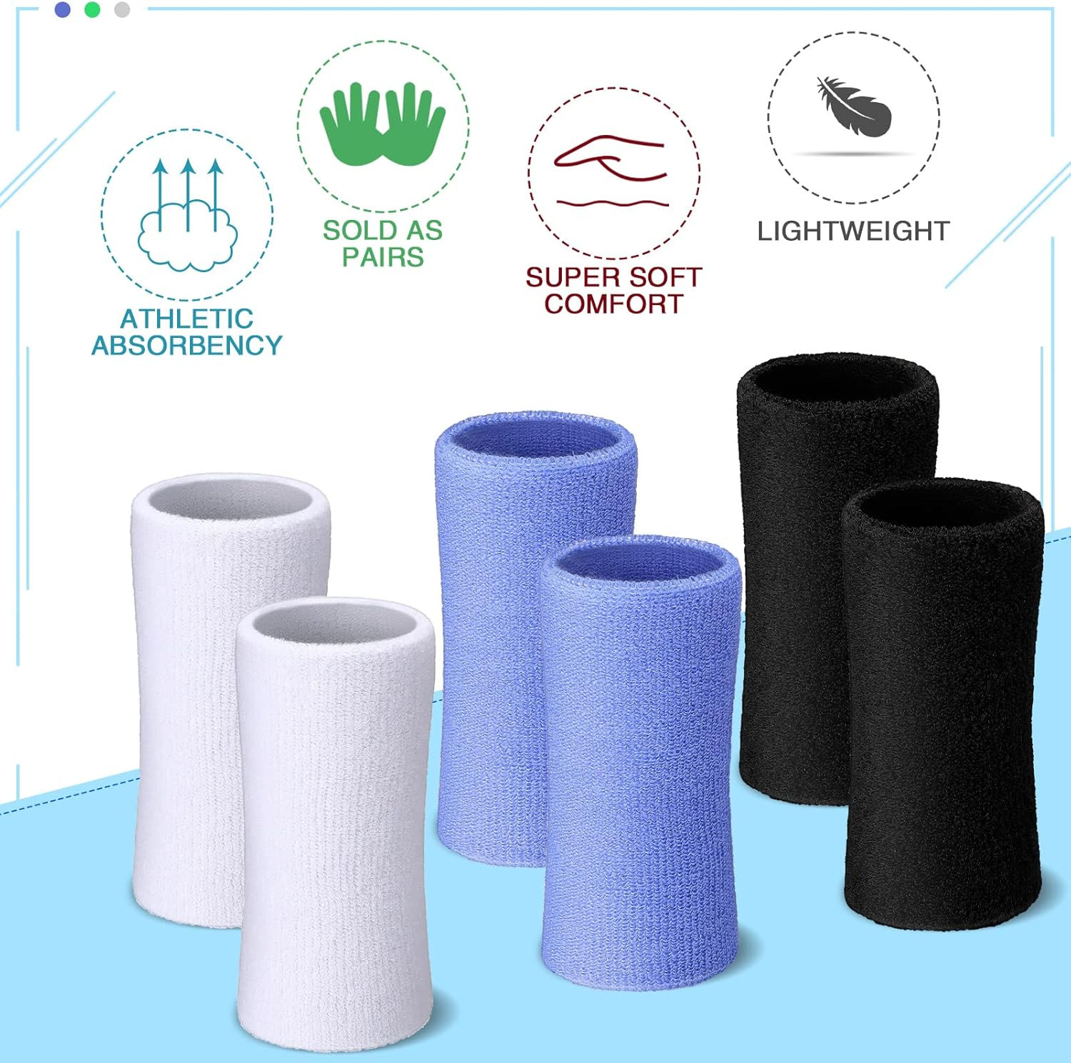 6 Inch Wrist Sweat Bands for Men Women Tennis Elastic Athletic Long Sweatband Wr