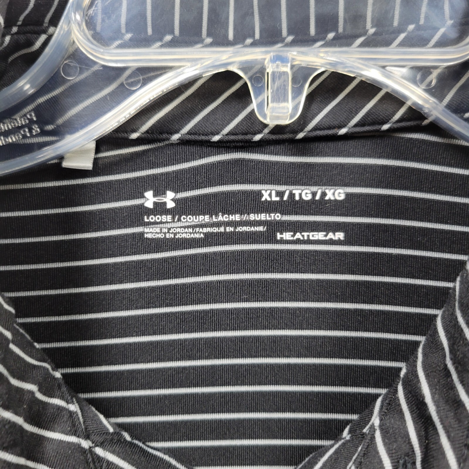 Under Armour Polo Shirt Mens XL Black Striped Short Sleeve Heat Gear Golf