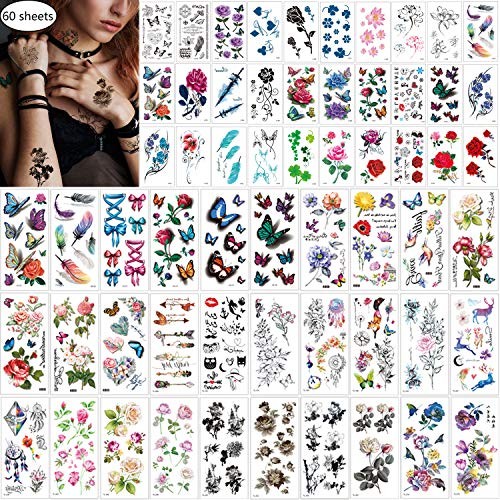 60 Sheets Waterproof Butterfly Flower Temporary Tattoos Stickers for
