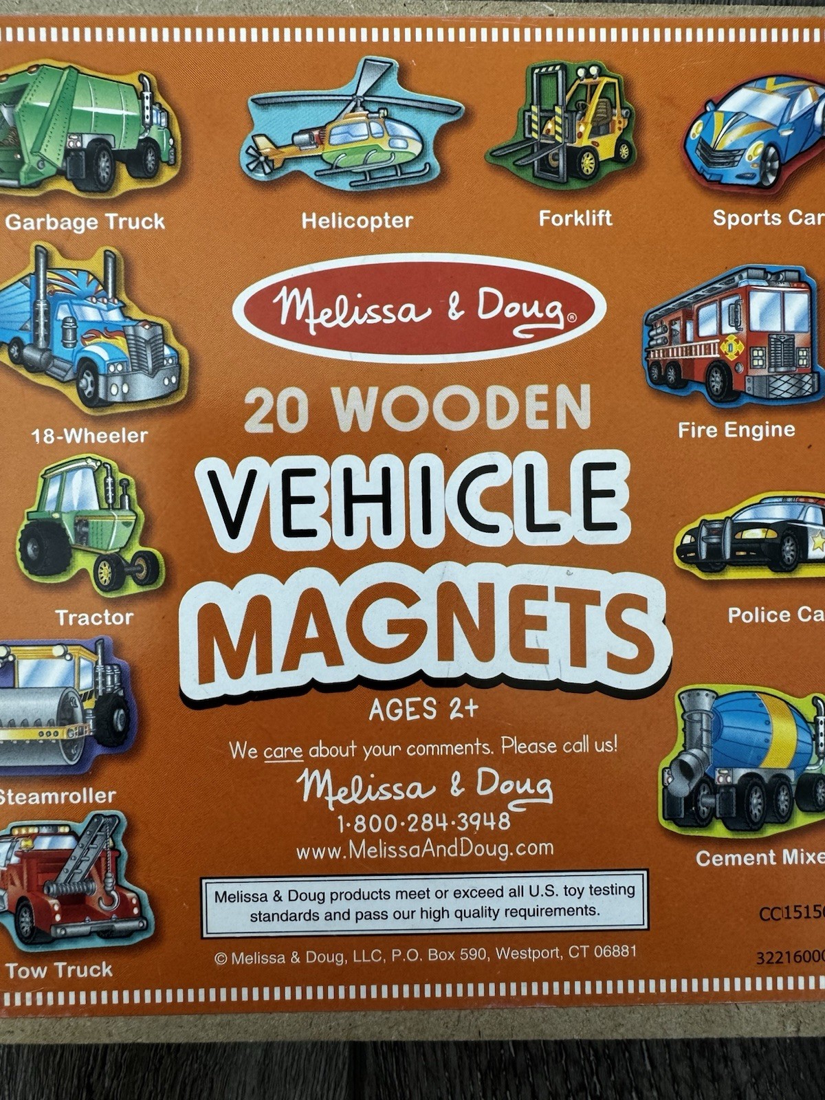 Melissa Doug 20 Piece Wooden Vehicle Magnets Used Sturdy Playtime Fun Ages 2