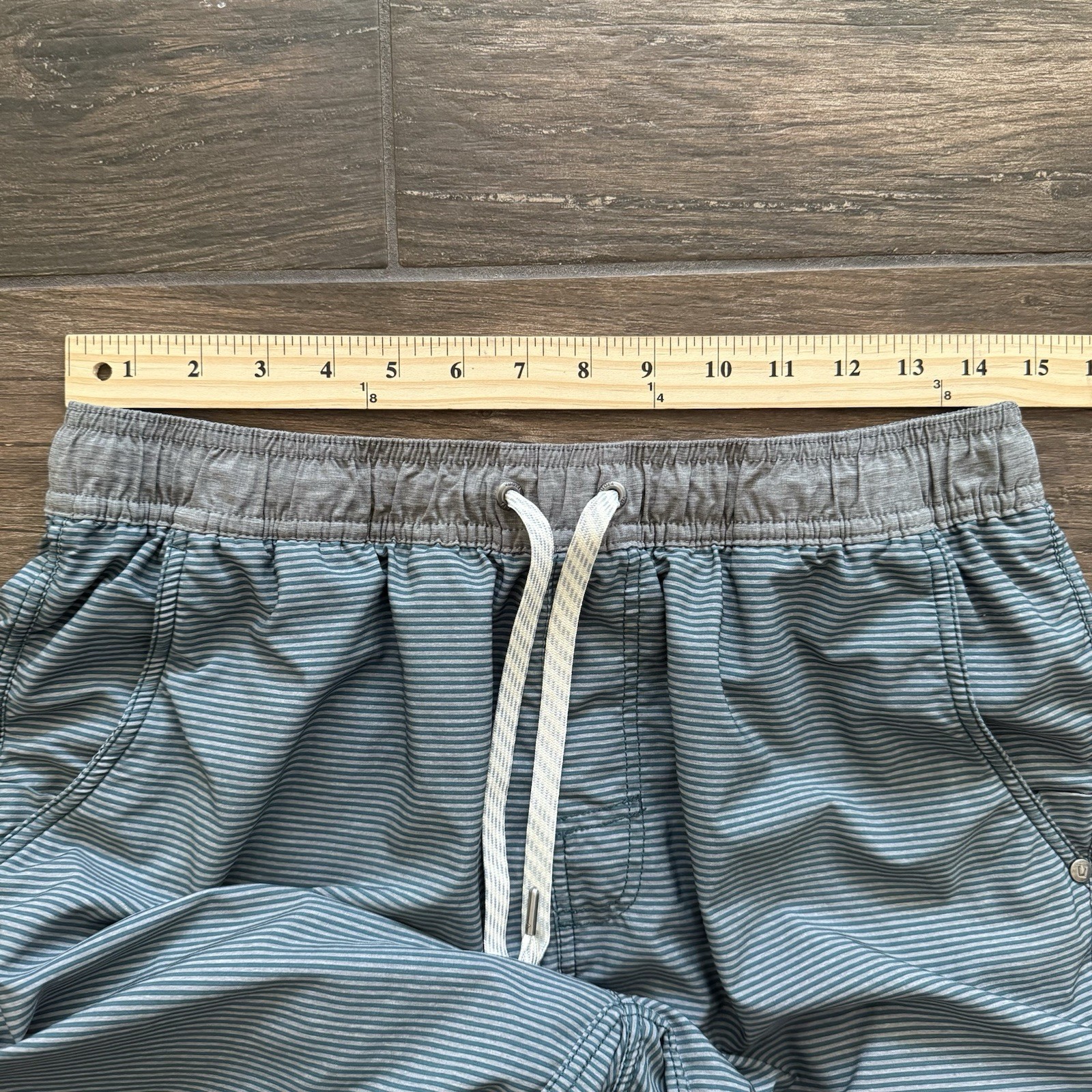 как выглядит Vuori Kore Shorts Men Large 7 Inseam Green Stripe Athletic Lined фото