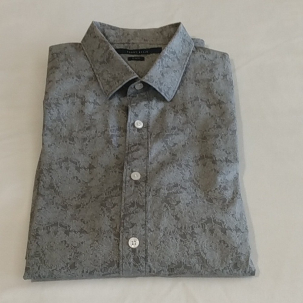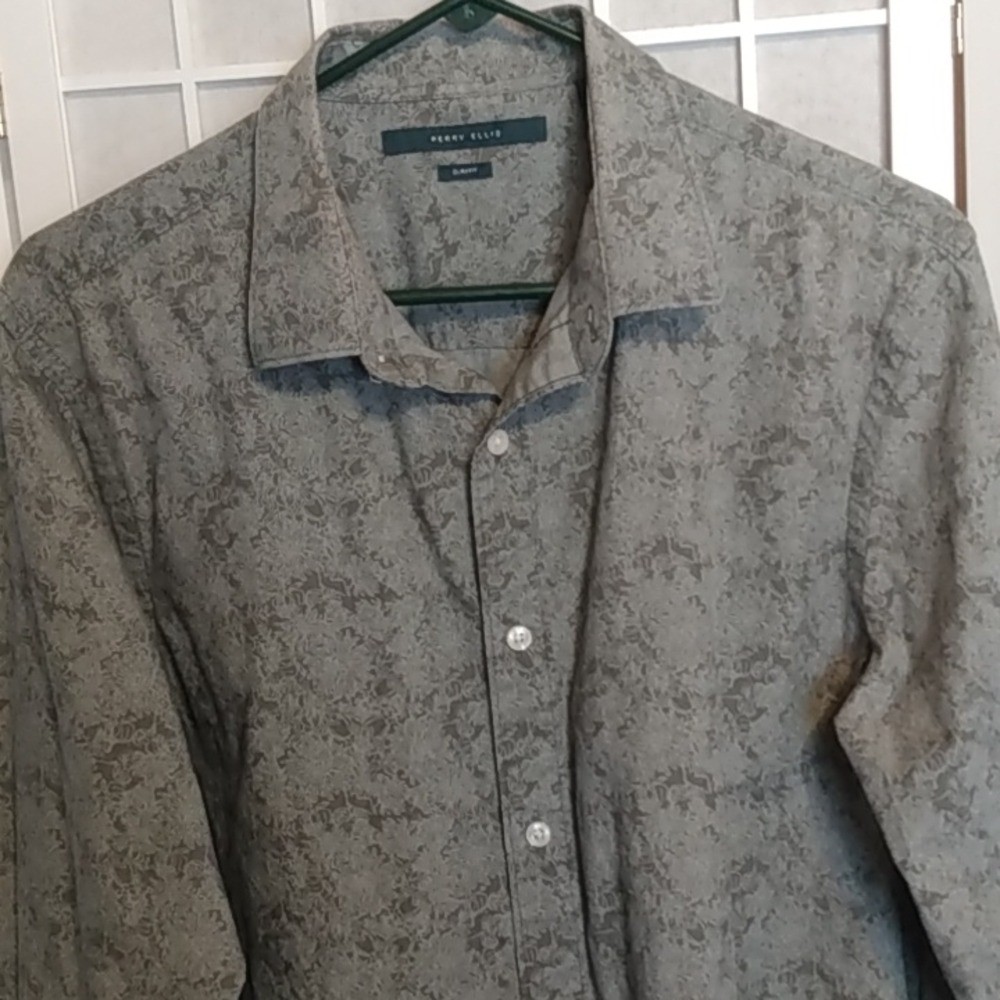 как выглядит "Perry Ellis Mens Slim Fit Button Down Shirt Gray Long Sleeve Size L фото