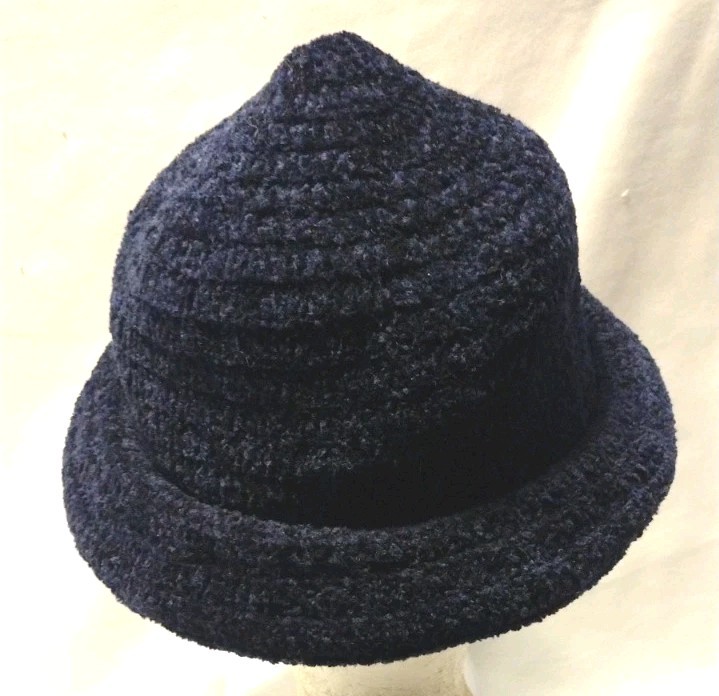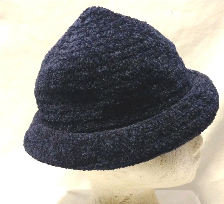 Vintage 60's Navy Blue 17 Round Women's Knitted Winter Hat Acrylic Blend