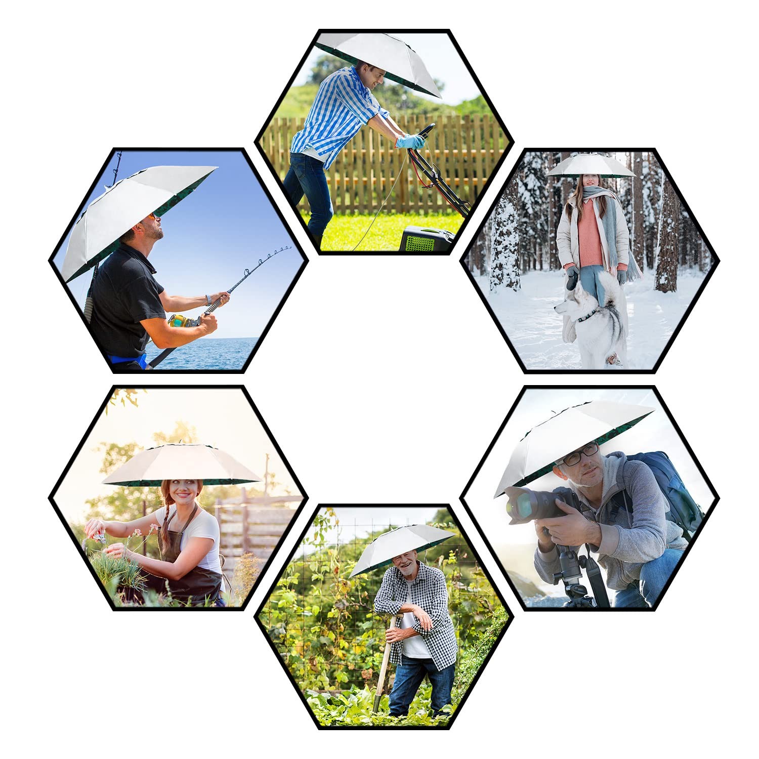 NEW-Vi Fishing Umbrella Hat Folding Large, Silver/Camouflage Wind Vent