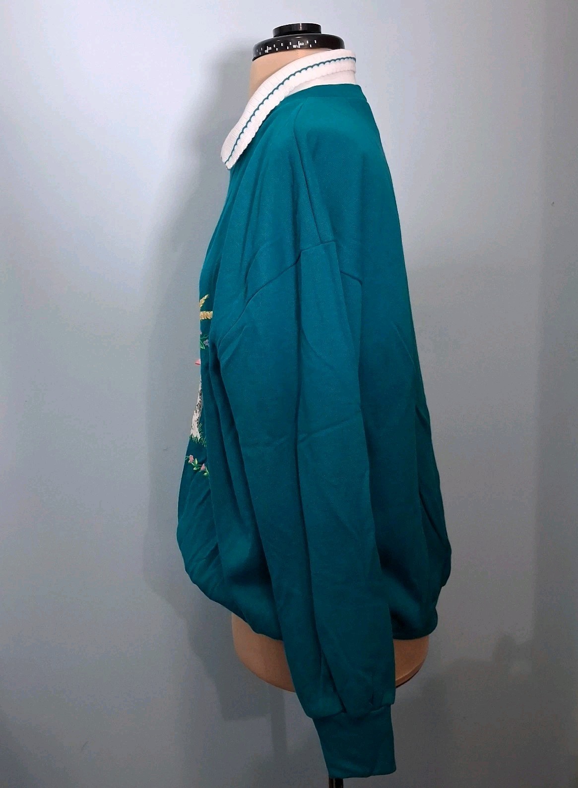 как выглядит Vtg 90s Floral Cats Grandma Collared Sweatshirt Large L Womens Teal Bow Detail фото