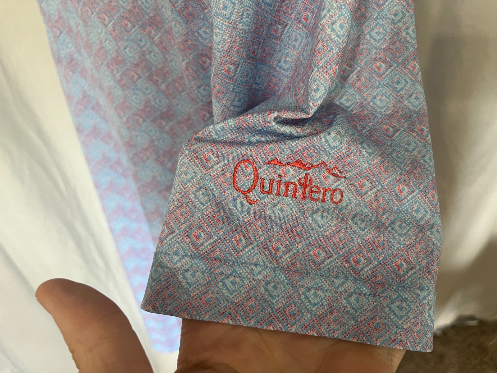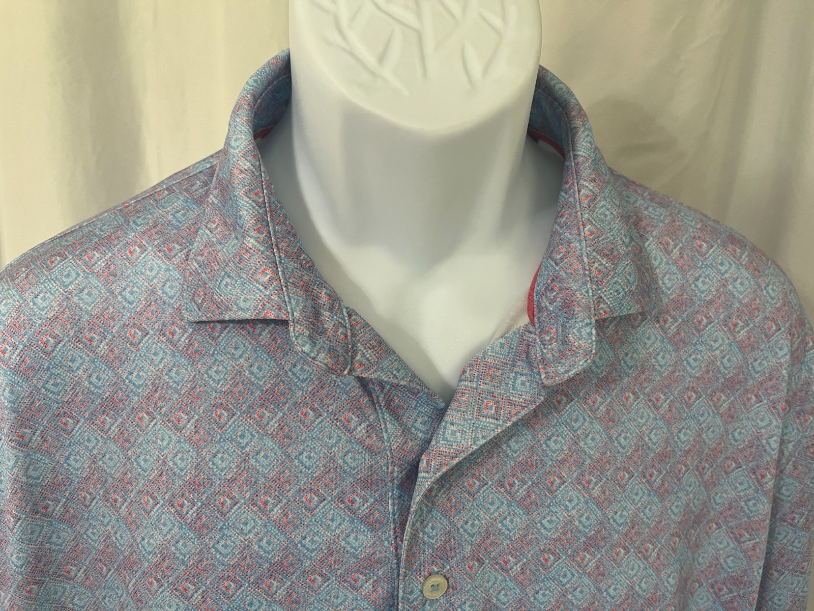 johnnie-O Men s Performance Golf Polo Shirt Large L White Pink Blue Short Sleeve