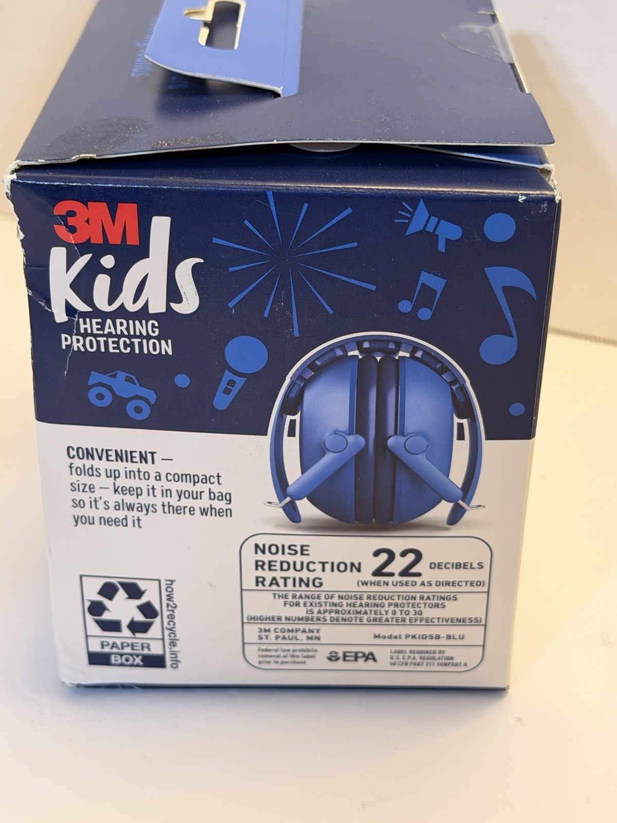 3M Kids Ear Muffs Blue Foldable Hearing protection headband. New. Box damaged.