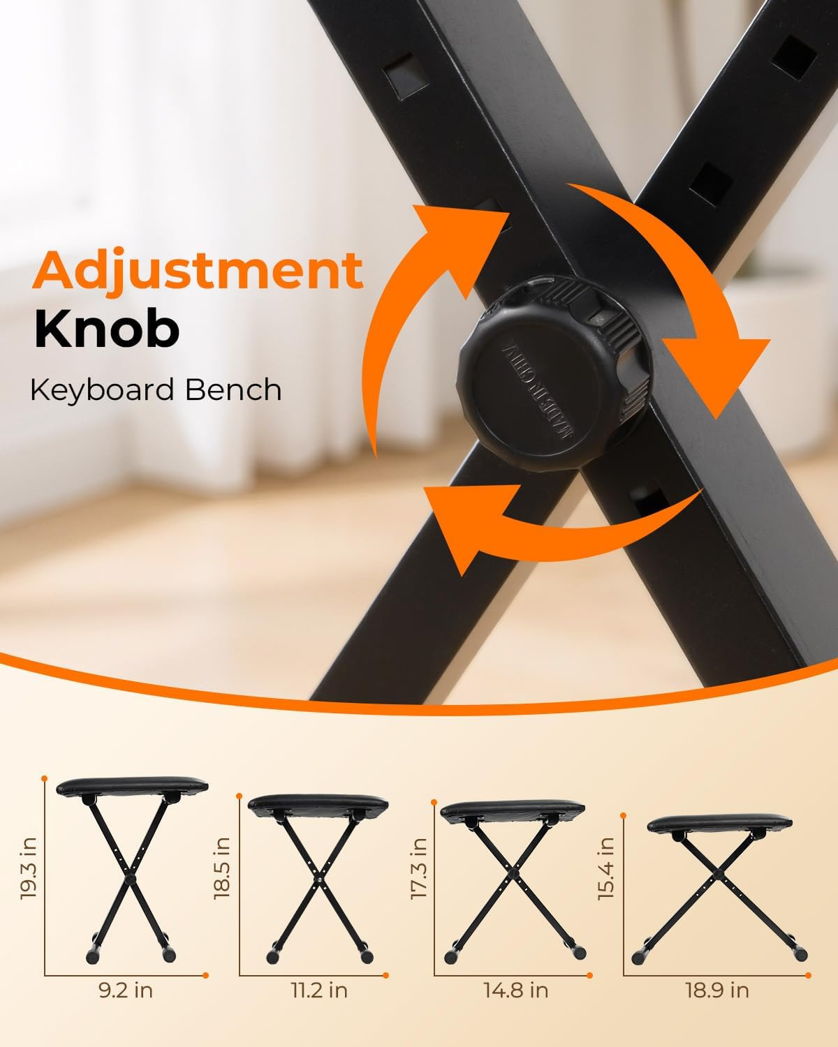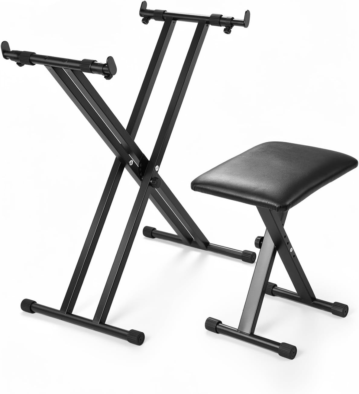 Keyboard Stand Bench Set Double-X Piano Stand with Adjustable Height 7 Leve