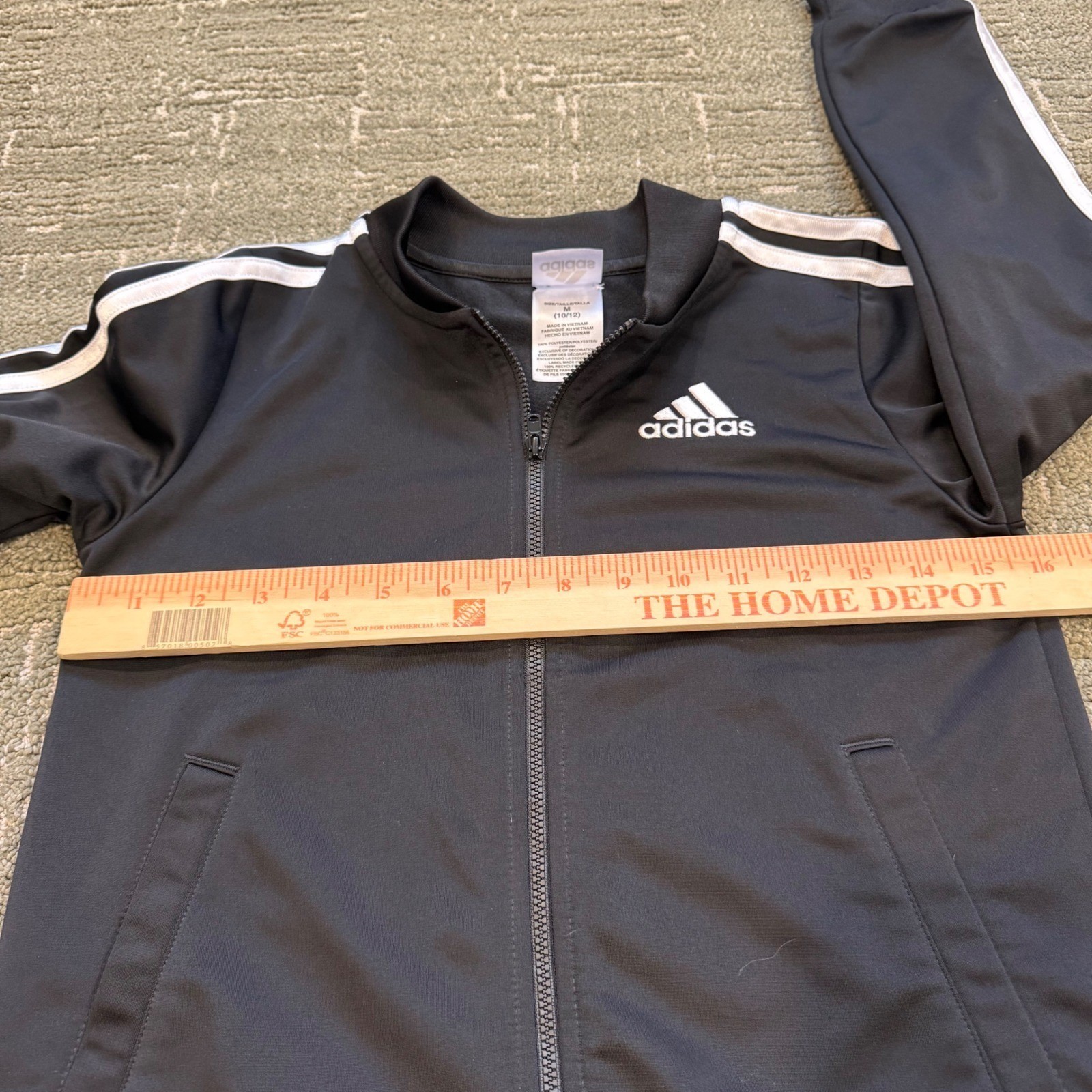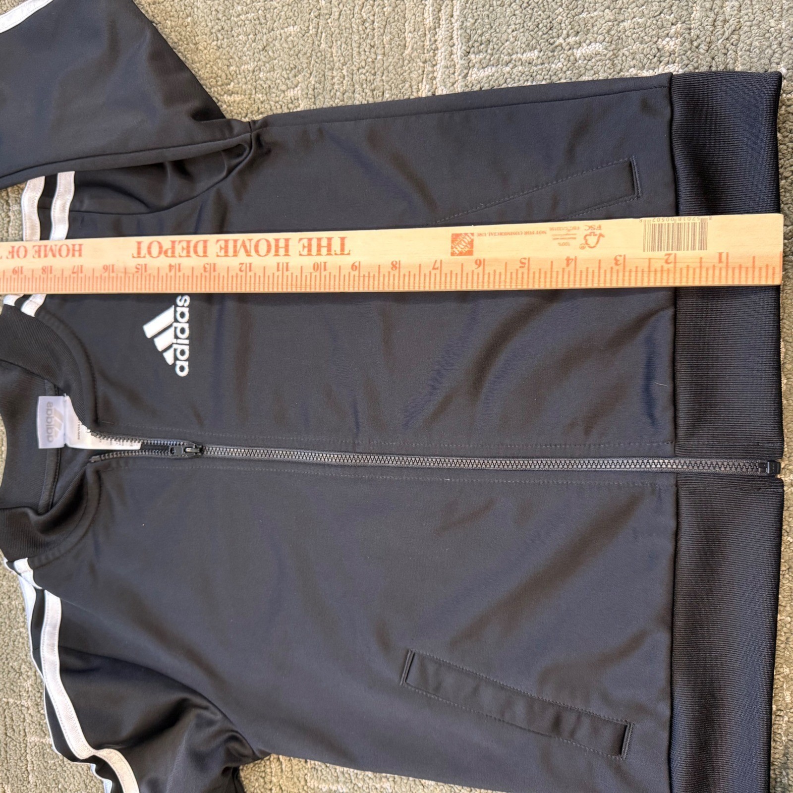 как выглядит Kids Adidas Track Jacket Black White 3 Stripe Zip Up Size M 10 12 фото