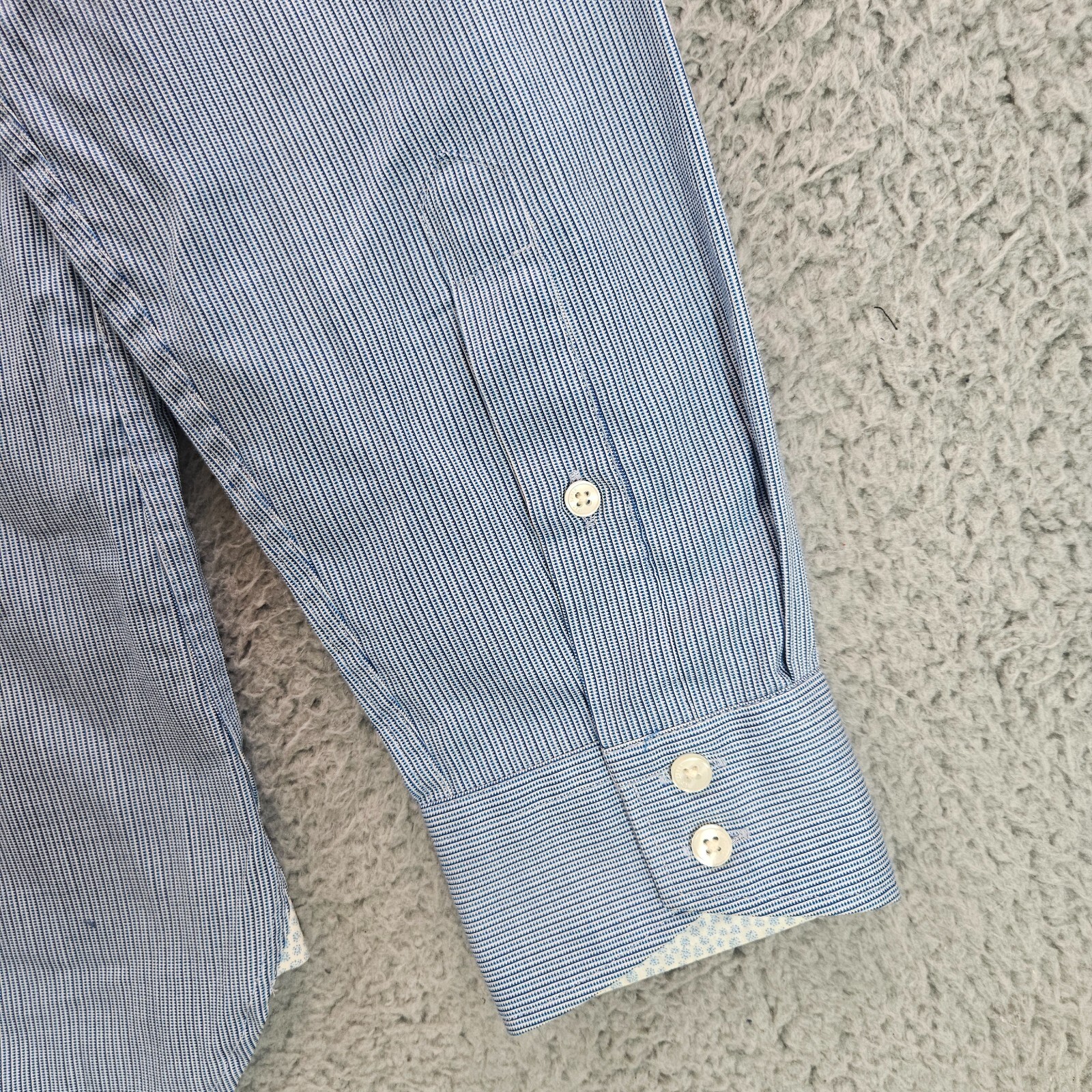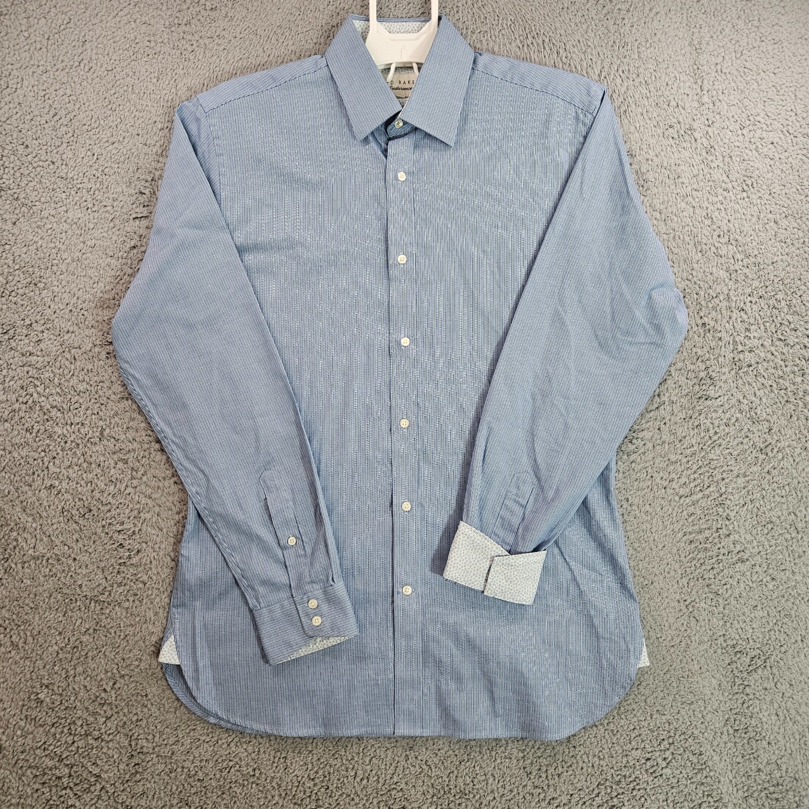 как выглядит Ted Baker Dress Shirt Men 15.5 34/35 Flip Cuff Button Long Sleeve Blue Striped фото