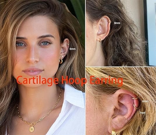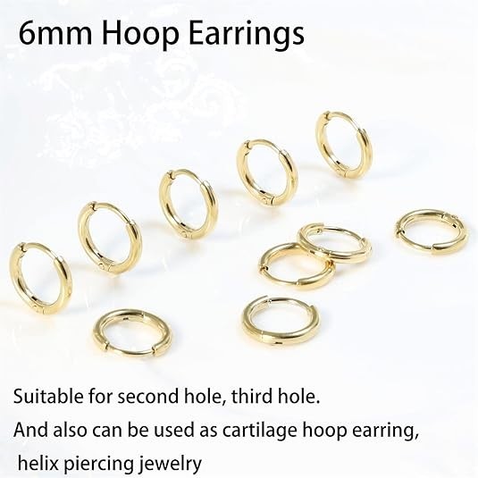 как выглядит Dainty Small Gold Hoop Earrings for Women Set: 5 Pairs Lightweight 14K Gold Mini фото